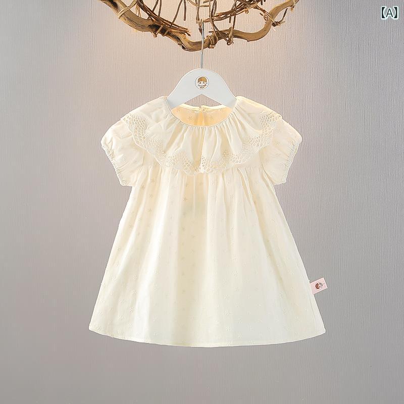 ワンピース キッズ 女の子 ベビー 夏 半袖 薄手 綿素材 プリンセスドレス Aライン 無地 おしゃれ かわいい 涼しい 普段着 淡い黄 白