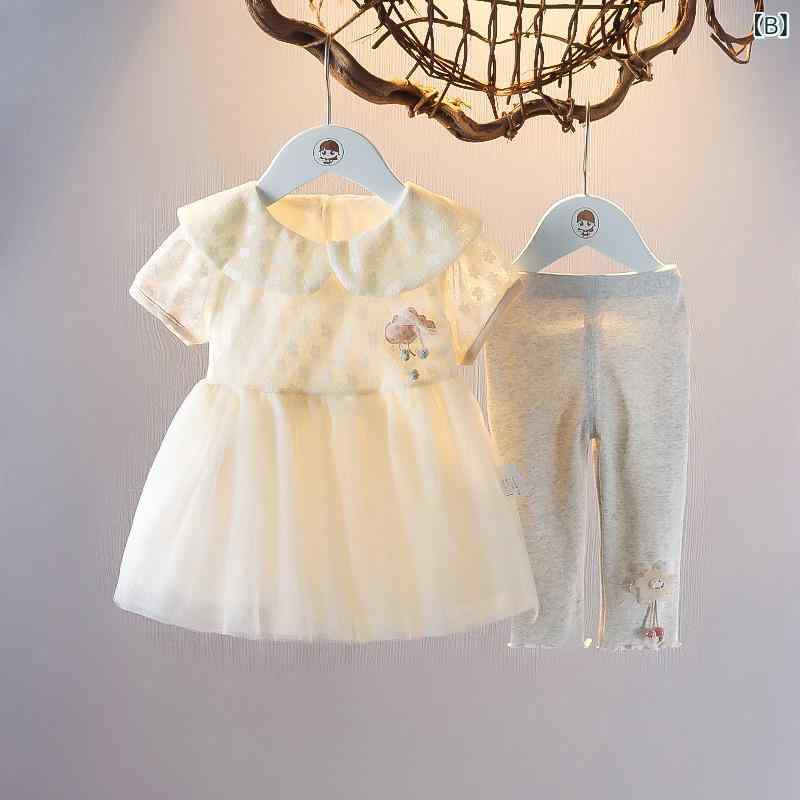 ・カテゴリ: キッズセットアップ・スタイル: スウィート・対象性別: 女の子・対象年齢: 1〜3歳・セットアップタイプ: スカートセット・セット点数: 2点セット・主な素材: 綿96.2%・デザイン要素: メッシュ・袖丈: 半袖・柄: 無地・厚さ: 普通・開閉スタイル: プルオーバー・安全基準: Aクラス・カラー展開: ピンク、ライトイエロー・サイズ展開: 66cm、73cm、80cm、90cm、100cm、110cm、120cm