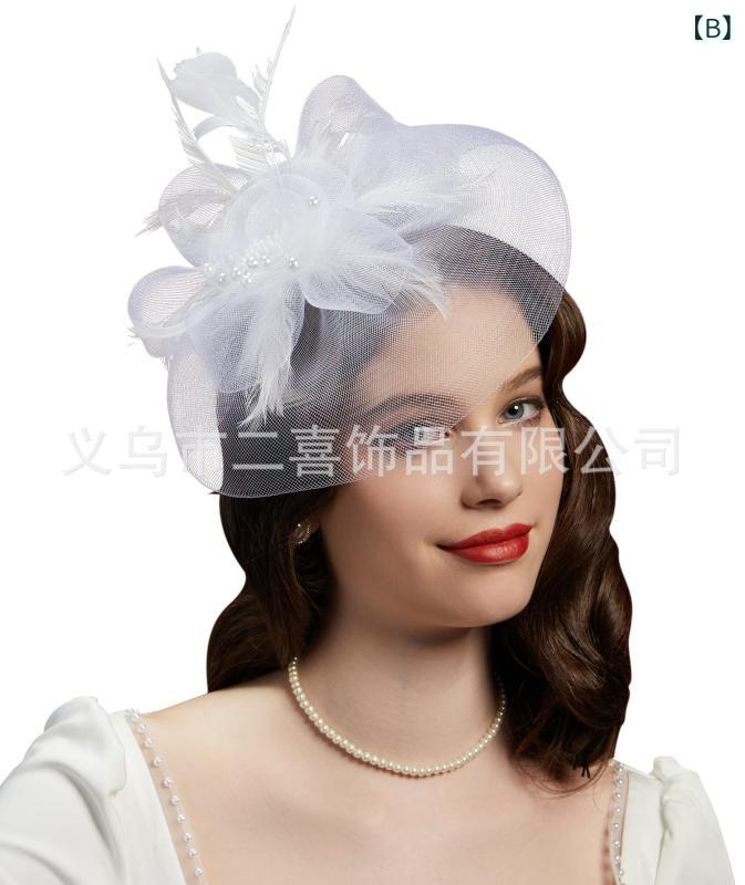 ファシネーター レディース 欧米風 ブライダル ウェディング チュール フェザー 花モチーフ ヘッドドレス 髪飾り 競馬観戦 パーティー 手作り