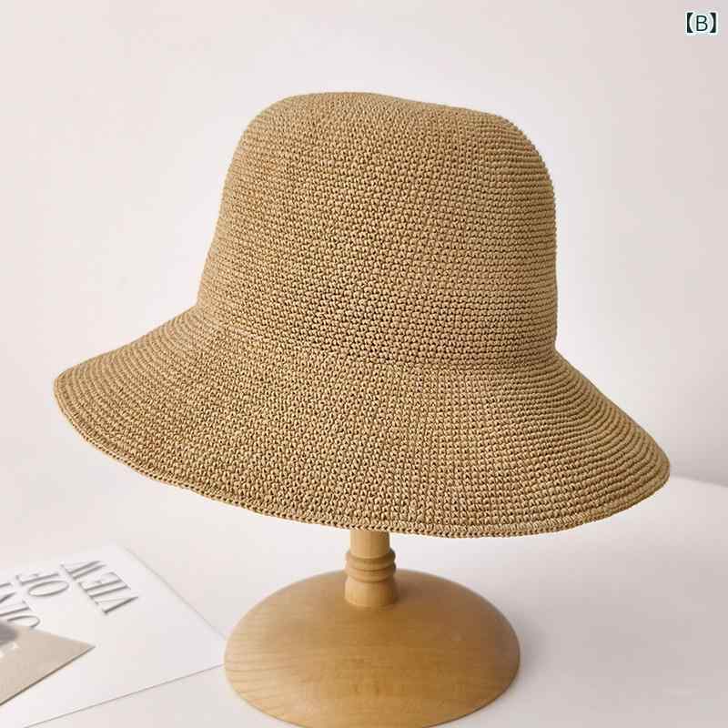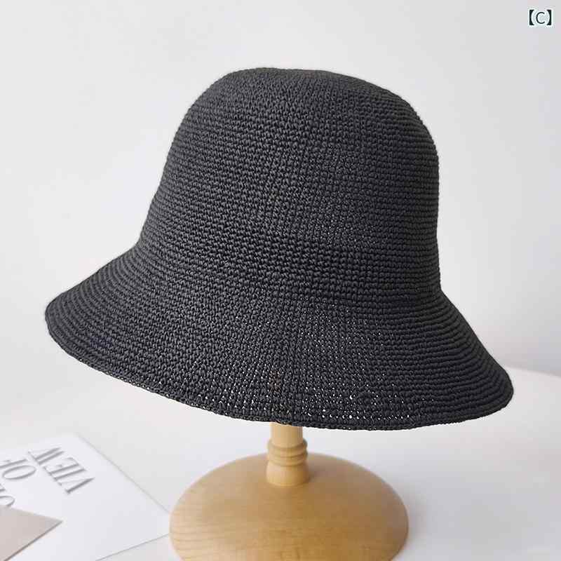 麦わら帽子 レディース シンプル 無地 春夏 カジュアル つば広 ワイドブリム バケットハット ペーパーストロー 日焼け防止 UVカット 通気性 ビーチ リゾート 旅行 デイリーユース お出かけ ベージュ キャメル 黒 ブラウン