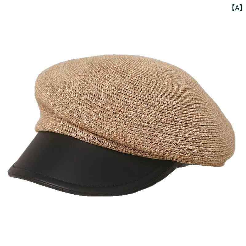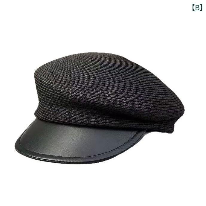 麦わら帽子 レディース フレンチスタイル 高級感 草編み ベレー帽 リボン UVカット 紫外線対策 日よけ 春夏 ストローハット 大つば リゾート お出かけ 街歩き おしゃれ かわいい カーキ ブラック