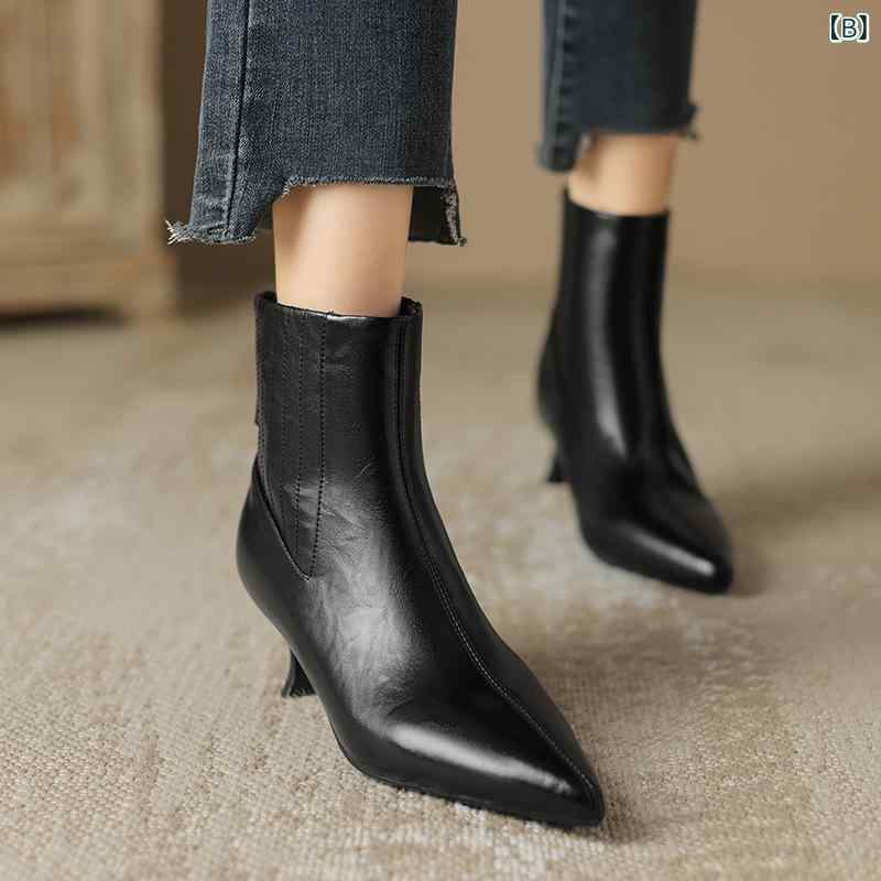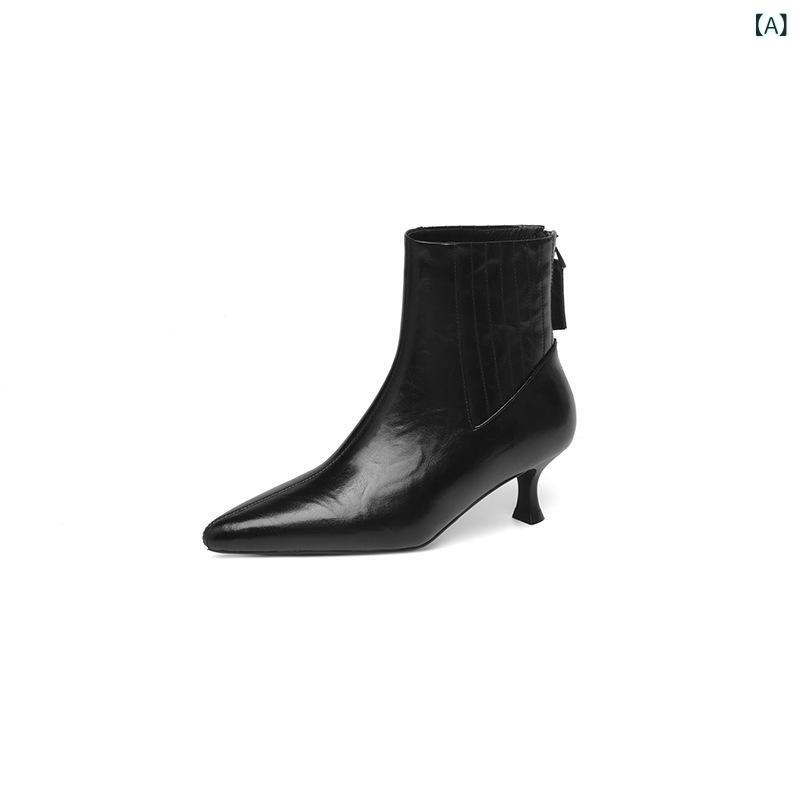 ショートブーツ レディース 女性用 高ヒール ピンヒール ハイヒール 秋冬 牛革 レザー ポインテッドトゥ 尖りトゥ ジョッキーブーツ ライダーブーツ シンプル カジュアル ブラック 黒 ブラウン 茶