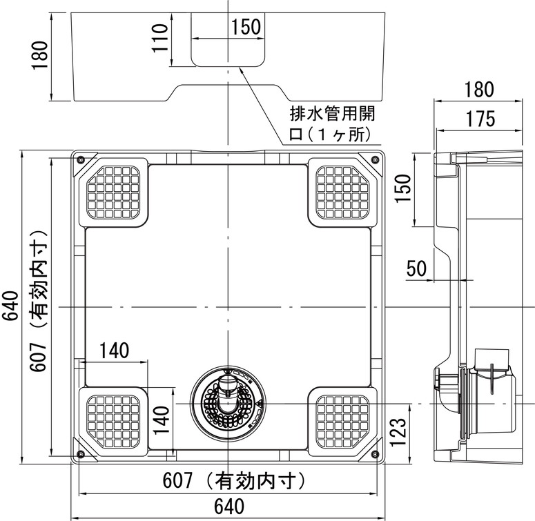 ■商品のご紹介ユニット工法や特殊床構造などで床の穴開けが難しい場合や、既築のアパートやマンションなどで床下に配管を這わすことが出来ない場合に最適な商品です。 防水パンと台座の一体成形型になっていますので現場作り付け架台を手作りする必要がなく施工をが楽になりコスト削減・施工品質の安定へと繋がります。トラップを手前に配置し清掃性を高めて配管の取り回しに考慮された防水パンです。様々な設置場所に柔軟に対応できるよう排水配管用の開口部があるタイプ(TPR640)とないタイプ(TPR640N)の2種類揃えています。型番TPR640N-W3-F1商品番号049300497本体サイズW640×D640×H180mm有効寸法W607×D607mm材質PP排水穴位置手前 開口無重量約4.0kg耐荷重200kg付属品ビス(5.2×97)×4 コーナーキャップ×4 TPU専用排水トラップ TPU専用フレキ×1 施工仕様書