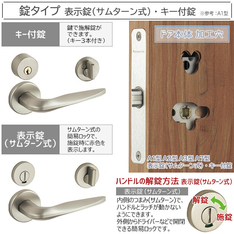 【在庫有り】パナソニック ベリティスキー付錠(錠前のみ・キー3本付き)丸座 サテンシルバー色塗装 品番:MJE1HA18ST開きドア 開き戸 錠前 【ハンドル・ラッチなし】