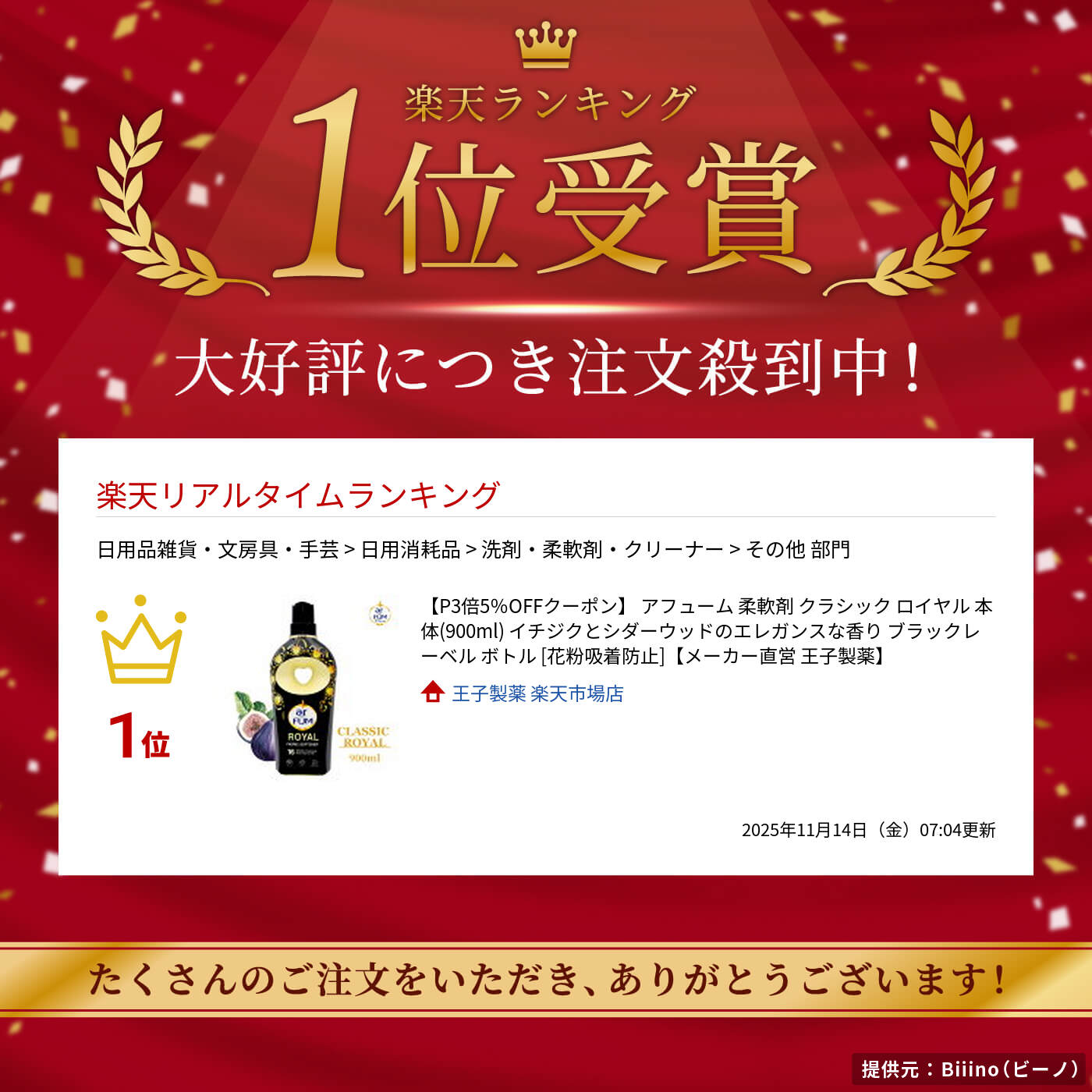 【P3倍5%OFFクーポン】 アフューム 柔軟剤 クラシック ロイヤル 本体(900ml) イチジクとシダーウッドのエレガンスな香り ブラックレーベル ボトル [花粉吸着防止]【メーカー直営 王子製薬】