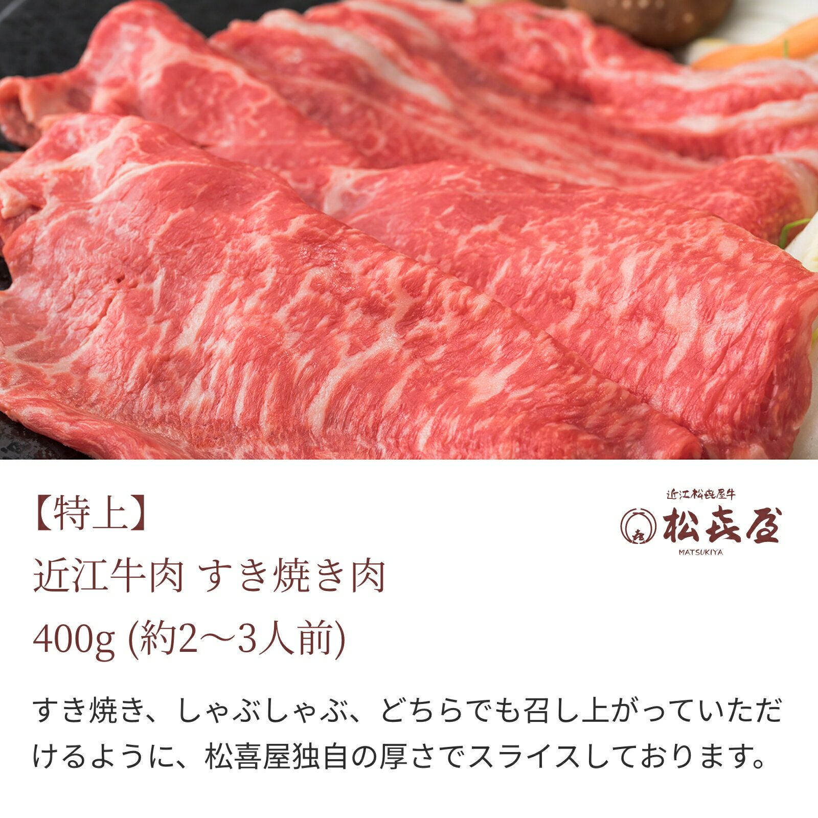 【特上】近江牛 すき焼き用 400g (約2〜3人前) 送料無料 最高級 近江牛 お取り寄せグルメ プレゼント すきやき しゃぶしゃぶ 近江牛認定店 松喜屋