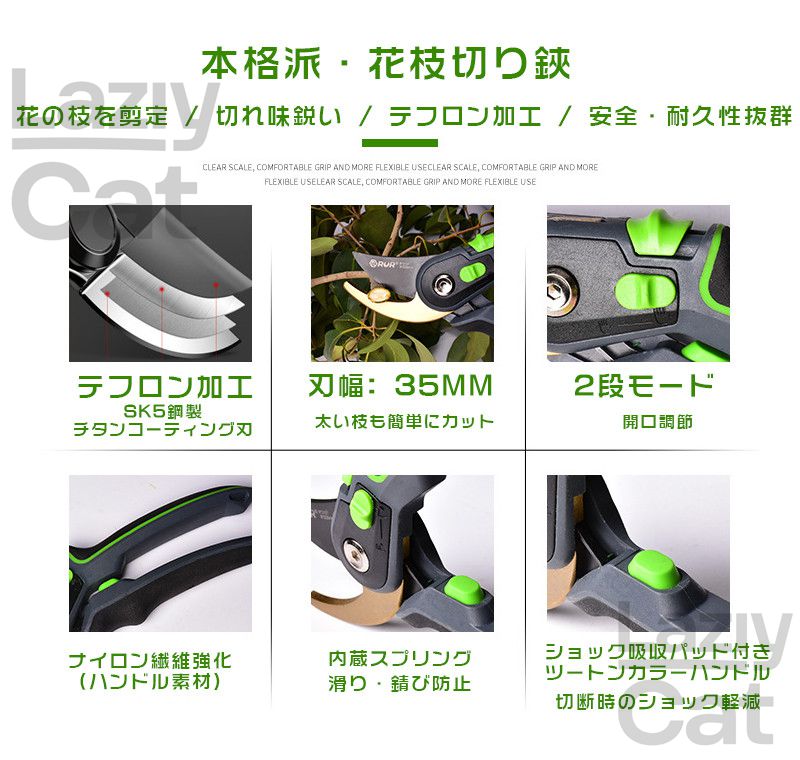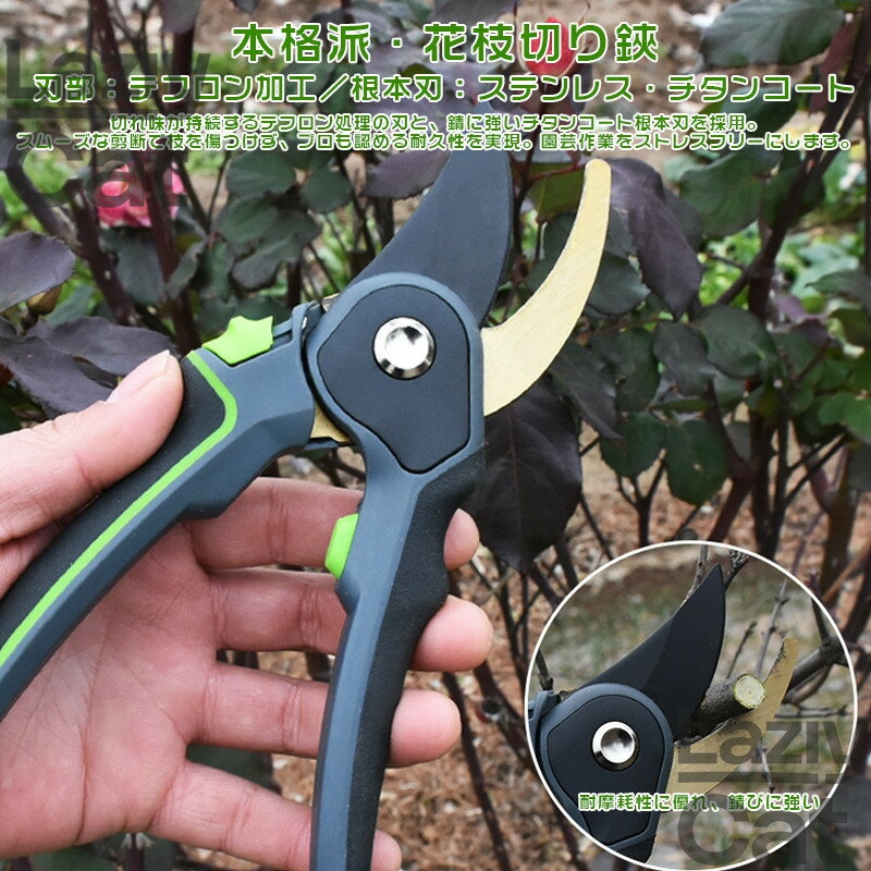 商品情報注意事項※製品品質向上、または製造時期により、予告なくデザイン及び仕様を変更する場合がございます。※生産過程におきまして、若干のサイズ誤差、個体差が生じる場合がございます。※サイトに掲載されている商品は、撮影の照明、またパソコンなどの環境により、画像と実際の商品の色味が多少異なる場合がございます。※本製品は輸入品のため、物流運送の都合により、多少シワや凹み、スレや汚れなどがある場合がございます。※検品のため弊社にてパッケージを開封する場合がございます。※パッケージは予告無く変更になる場合がございます。※本製品を利用したことによる、直接もしくは間接的に生じた損害、破損について当店は一切の責任を負いません。安心保証1.初期不良の保証は7日間となります。到着後7日間以内に不具合がないかをご確認お願いいたします。2.ご不明な点、若しくは初期不良がある場合、お写真/動画付きでお問い合わせください。3.保証期間内におきましても次の場合には対応いたしかねます。3-1.使用上の誤り、不当な修理、改造などによる故障及び損傷3-2.お買い上げ後の落下などによる故障及び損傷3-3.火災、地震、その他の天災地変による故障及び損傷 メーカー希望小売価格はメーカーサイトに基づいて掲載しています剪定バサミ 剪定鋏 剪定ばさみ 2段階調節可能 SK85高炭素鋼 耐久性 疲れにくい人間工学デザイン 枝切りバサミ 園芸ハサミ 園芸用はさみ 錆びにくい 開口部35mm 軽量化ハンドル 握りやすい 果樹 庭木 盆栽 庭園作業 ガーデニング 観葉植物 プロも驚いた快適性!30°傾斜グリップ剪定バサミ 剪定鋏 剪定ばさみ 2段階調節可能 SK85高炭素鋼 耐久性 【高硬度SK5鋼 錆びにくく長く鋭利】プロ仕様のSK5鋼(SK85)ブレードを採用! 高周波焼入れ処理で硬度と粘りを両立し、果樹や庭木の太い枝もスパッと切断。チタンコーティングで錆に強く、汚れも拭き取れるのでメンテナンス簡単。アルミ合金ハンドルで軽量ながら耐久性も抜群です。【切りたい枝の太さに合わせて2段階調整可能】2段階調節機能付きで、細い枝から太い枝(最大φ35mm程度)まで1本で対応。調節ネジを回すだけで剪切力が変えられ、様々な植物の剪定に柔軟に対応できます。【握りやすさを追求した人間工学設計】・ABS+TPR素材のグリップは滑りにくく、長時間作業でも手が疲れない・握り部のカーブが手の形にフィットし、力が均等に分散・塗装剥がれにくいので、屋外使用でも見た目が長持ち【安全ロック付きで収納&持ち運び安心】・内蔵スプリング設計でバネの脱落を防止・使用時以外はワンタッチロックで刃が閉じたまま固定・誤って開く心配がなく、収納時や持ち運び時の安全性を確保【プロアマ問わず使えるマルチツール】・ガーデニング:庭木の剪定、バラの手入れ、盆栽の整形・家庭菜園:果物の収穫、野菜の仕立て・フラワーアレンジメント:生け花用の枝切り・DIY作業:細かい木材のカットなど注意事項 :◆注意事項: ※小さい部品が含まれます。お子様が誤って飲み込まない様にご注意下さい。※採寸の方法によってサイズの誤差は多少発生します。ご了承下さい。※撮影の環境、及びご覧になっているモニタによって、画像と実物の色味が違うように見えることがあります。※製品品質向上、または製造時期により、予告なくデザイン及び仕様を変更する場合がございます。※生産過程におきまして、若干のサイズ誤差、個体差が生じる場合がございます。※サイトに掲載されている商品は、撮影の照明、またパソコンなどの環境により、画像と実際の商品の色味が多少異なる場合がございます。※本製品は輸入品のため、物流運送の都合により、多少シワや凹み、スレや汚れなどがある場合がございます。※検品のため弊社にてパッケージを開封する場合がございます。※パッケージは予告無く変更になる場合がございます。※本製品を利用したことによる、直接もしくは間接的に生じた損害、破損について当店は一切の責任を負いません。 5