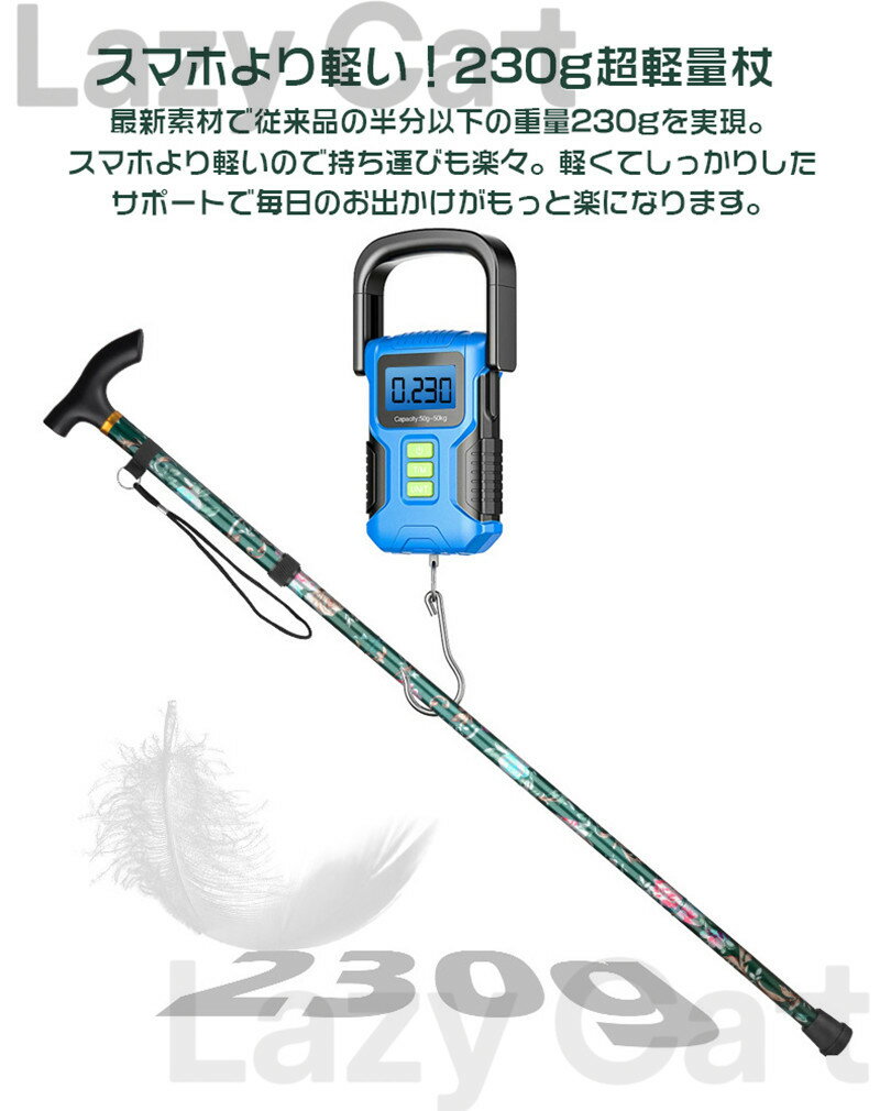 商品情報注意事項※製品品質向上、または製造時期により、予告なくデザイン及び仕様を変更する場合がございます。※生産過程におきまして、若干のサイズ誤差、個体差が生じる場合がございます。※サイトに掲載されている商品は、撮影の照明、またパソコンなどの環境により、画像と実際の商品の色味が多少異なる場合がございます。※本製品は輸入品のため、物流運送の都合により、多少シワや凹み、スレや汚れなどがある場合がございます。※検品のため弊社にてパッケージを開封する場合がございます。※パッケージは予告無く変更になる場合がございます。※本製品を利用したことによる、直接もしくは間接的に生じた損害、破損について当店は一切の責任を負いません。安心保証1.初期不良の保証は7日間となります。到着後7日間以内に不具合がないかをご確認お願いいたします。2.ご不明な点、若しくは初期不良がある場合、お写真/動画付きでお問い合わせください。3.保証期間内におきましても次の場合には対応いたしかねます。3-1.使用上の誤り、不当な修理、改造などによる故障及び損傷3-2.お買い上げ後の落下などによる故障及び損傷3-3.火災、地震、その他の天災地変による故障及び損傷 メーカー希望小売価格はメーカーサイトに基づいて掲載しています杖 自立式 折りたたみ おしゃれ 自立杖 つえ 介護 自立 軽量 伸縮 歩行補助 レディース 女性用 ステッキ 長さ調節 折り畳み不可 屋外転倒防止 高齢者 柄杖伸縮型 介護 杖 敬老の日 母の日 お中元 誕生日 プレゼント 驚きの軽さで日常散策から旅行まで負担ゼロの歩行サポート 杖 自立式 折りたたみ 伸縮 歩行補助 レディース 女性用 ステッキ 長さ調節 おすすめポイント【商品材質】:支柱:アルミ、握り部:プラスチック、杖先ゴム:合成ゴム、ストラップ:ナイロン【豊富な柄】:派手すぎず綺麗で落ち着いた色合いで、年齢を問わずお使いいただけます。注意事項 :※採寸の方法によってサイズの誤差は多少発生します。ご了承下さい。※撮影の環境、及びご覧になっているモニタによって、画像と実物の色味が違うように見えることがあります。※製品品質向上、または製造時期により、予告なくデザイン及び仕様を変更する場合がございます。※生産過程におきまして、若干のサイズ誤差、個体差が生じる場合がございます。※サイトに掲載されている商品は、撮影の照明、またパソコンなどの環境により、画像と実際の商品の色味が多少異なる場合がございます。※本製品は輸入品のため、物流運送の都合により、多少シワや凹み、スレや汚れなどがある場合がございます。※検品のため弊社にてパッケージを開封する場合がございます。※パッケージは予告無く変更になる場合がございます。※本製品を利用したことによる、直接もしくは間接的に生じた損害、破損について当店は一切の責任を負いません。 5