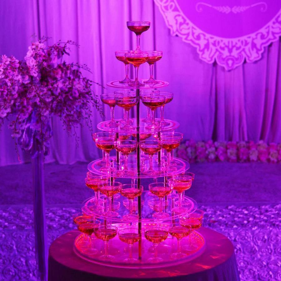 シャンパンタワーディスプレイ、パーティー用の5層ハート型のアクリルゴブレットワインタワー、ロマンチックな赤ワインスタンド60カップ入り、結婚披露宴の誕生