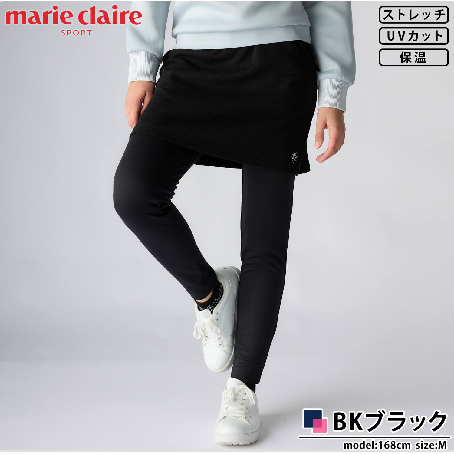 マリクレールゴルフ marie claire GOLF ゴルフウェア レギンス付きスカート レディース 秋 冬 ストレッチ UVカット 保温 防寒 キルト 膨れジャガード ワンポイント 刺繍 おしゃれ きれいめ ズボン ボトムス 黒 白 M L LL 2025fw karlas