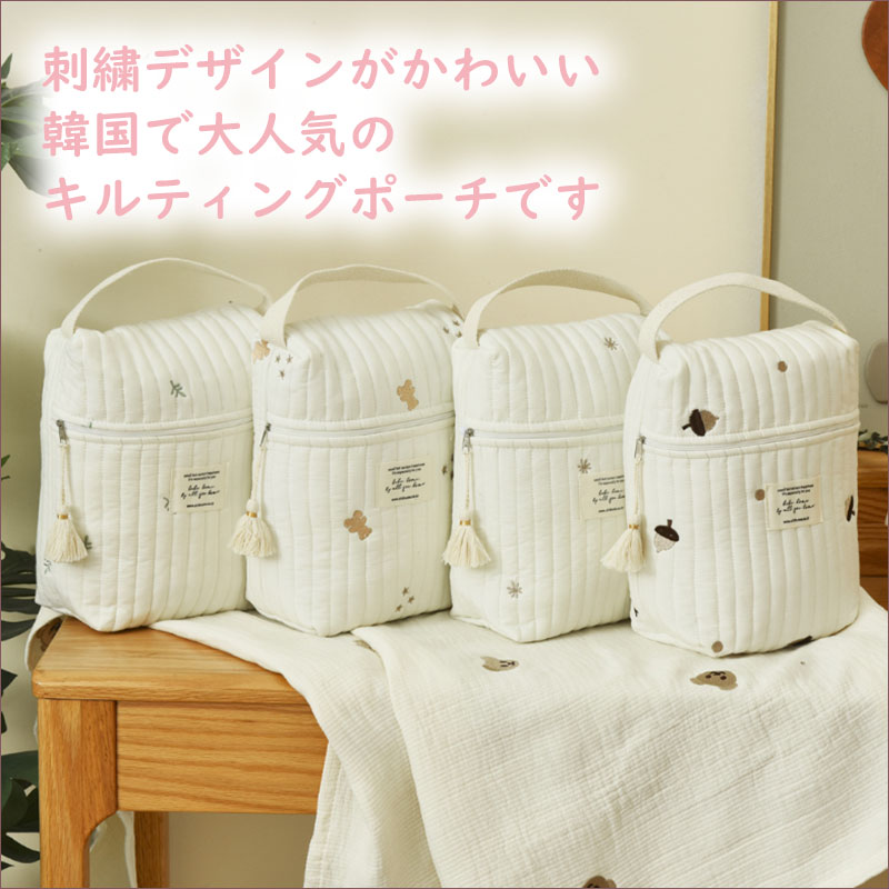 \当日発送/【楽天1位】 マグポーチ おむつポーチ 哺乳瓶ポーチ 大容量 超軽量 取っ手付き マザーズバッグ イブル キルティング かわいい ヌビバッグ 吊り下げポーチ おしりふき おむつ入れ 多機能 アニマル柄 刺繍 出産祝い ギフト プレゼント キルト 旅行 マザーズバッグ