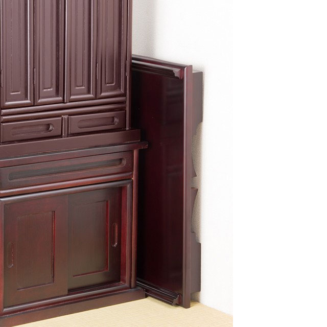 お仏壇に馴染む色み、黒檀調、紫檀調の折りたたみ供物台。お供え物置きや法要時の焼香卓、文机に。桐製で軽く、持ち運びや収納もラクラク。折りたたみ式でスッキリ収納。 ●サイズ/使用時:約幅60×奥行35×高さ28.5cm、収納時:約幅60×奥行35×高さ9.5cm ●重さ/約4.5kg ●素材/MDF ●備考/組立不要完成品、棚板は、取り外し可能 ※机の上の小物は商品に含まれておりません。 ●製造国/ベトナム製(企画:日本) お届け先が沖縄県、離島及び一部地域につきましては追加送料が掛かります。〈匠木工〉棚付き折りたたみ供物机 お仏壇になじむ色みの便利な折りたたみ供物机。 お供え物置きや法要時の焼香卓、文机に。桐製で軽く、持ち運びや収納もラクラク。 ※机の上の小物は商品に含まれておりません。 ※棚板は取り外し可能。 黒檀調 折りたたみ式でスッキリ収納。