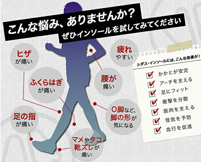 ★シダスのインソール! ●マックスプロテクトウォークの機能に加え、前足部にエリアを拡大した衝撃吸収&反発素材を搭載。 ●ジャンプでは体重の約8倍の負荷がかかるといわれている足裏への衝撃をPODIANi+(ポディアンアイプラス)に加えカカト・前足部パーツでも吸収します! ●バスケットボール・バレーボールなどのジャンプ競技におすすめです。 ●つま先の厚み:5.0mm。 ※画像のカラーは、撮影時の照明等の具合により実物と異なる可能性がございます。 なお、商品の色の見え方と実物の色は、お客様のご使用されているパソコン・モニターの環境等により多少異なる場合がございますのでご了承ください。 ■サイズ XS(22.0cm〜23.0cm)、S(23.5cm〜24.5cm)、M(25.0cm〜26.5cm)、L(27.0cm〜28.0cm)、XL(28.5cm〜29.5cm) ・メーカー希望小売価格はメーカーサイトに基づいて掲載しています。 【ご注意】 コチラの商品はお取り寄せとなります。 ●商品を安くご提供する為、ご注文後にメーカーからお取り寄せしております。ご注文から発送までに5〜6営業日頂いておりますので、配達日時のご希望に添いかねる場合がございます。 ●お取り寄せの特性上、メーカー在庫欠品という場合がございます。その場合、ご注文をキャンセルとさせていただきます。予め、ご了承くださいませ。 ●お取り寄せ商品は、初期不良(汚れ・ほつれ等)を除く、お客様ご都合での返品・交換・キャンセルはお受けできません。 予めご了承の上ご注文をお願いいたします。 ※上記の注意事項をご理解の上、ご注文をお願いいたします。
