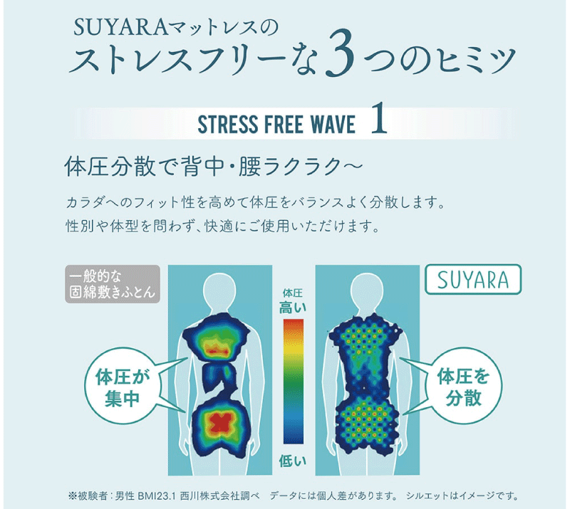 西川 体圧分散マットレス 丸巻き [SUYARA]〈SU-01〉凸凹構造 適度な反発力 抗菌加工シングル(97×200×9)セミダブル(120×200×9)ダブル(140×200×9)点で支える 高反発 マットレス246010631 246010649 246010656