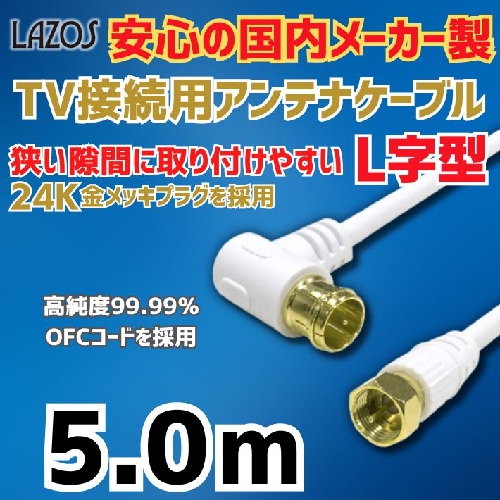 LAZOS アンテナケーブル 5m 4K 8K 地デジ BS CS 対応 S-4C-FB規格 4k対応 8K対応 テレビ 高品質 同軸ケーブル 低減衰ケーブル BS CS 地デジ 衛星放送 アンテナ ケーブル コード TV テレビコード テレビ線 AVケーブル テレビ買い替え 新居 テレワーク 引っ越し 送料無料