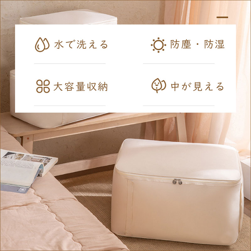 商品説明商品内容収納袋サイズ◆Sサイズ:約22×40×28cm◆Mサイズ:約20×54×32cm◆Lサイズ:約20×54×42cm◆XLサイズ:約30×54×42cm※サイズは規定値です。採寸方法の違いや個体差によって多少の誤差がございますので、予めご了承ください。カラーベージュ、グレー商品特徴【選べる4サイズ】収納する衣類、寝具のサイズや量によって、お好きなサイズをお選びいただけます。【大容量】たっぷり入る大容量。オフシーズンの衣類、羽毛布団、毛布、敷パッドなどの寝具の長期保管にピッタリ、すっきり収納できます。【中身が分かる】中に何を入れたかわかりやすい窓付きです。窓部分はメッシュ素材で通気性も◎【防塵。防湿】通気性があるので防湿効果あり。衣類や寝具をほこりから守ります。【持ち手付き】持ち手付きなので移動や持ち運びも簡単です。【安心素材】高品質のオックスフォード生地を使用しているので、傷に強いです。水で洗えるのでお手入れも簡単♪【ダブルファスナー】開閉に便利なダブルファスナー仕様。注意事項※生産ロッドの違いにより細部のデザインが多少異なる場合がございます。予めご了承くださいませ。※お届けした商品に不備、初期不良など御座いましたらお気軽にメールでお知らせ下さいませ。※生産製造、運輸過程で、シミ汚れ、キズ、小さい穴などが発生する場合がございます。使用に支障がない程度は許容範囲とさせていただきます。ご了承の上、ご購入くださいませ。※ご使用のモニター環境によって多少色合いが異なる場合がございます。★セットでおすすめ★ ★こちらの収納袋もおすすめ★