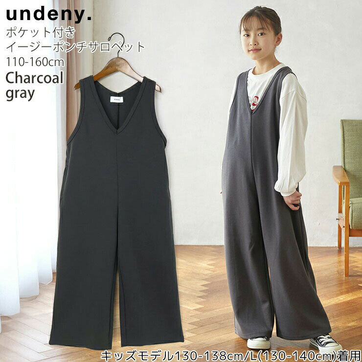 【メーカー価格4950円】undeny イージーポンチサロペット 無地 カラー Vネック 女の子 キッズ 秋冬 両ポケット付き ロングサロペット オールインワン オーバーオール アンディニー 130 140 グレー 黒 714205