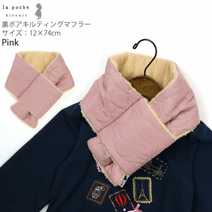 【メーカー価格2640円】la poche biscuit マフラー フラワーキルティング ボア 差し込み 通すだけ 女の子 キッズ 冬 子供服 子供用 小学生 通学 ガーリー ラポシェビスキュイ ベージュ ピンク LP22AU117