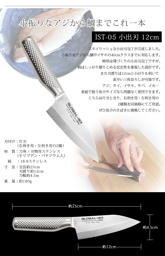 【特典】 グローバル 包丁 GLOBAL-IST グローバル イスト IST-05 小出刃 包丁 12cm ( 片刃 / 出刃包丁、魚切り ) 利き手別 Deba GLOBAL 包丁 出刃 【 正規販売店 】【 メール便不可 】