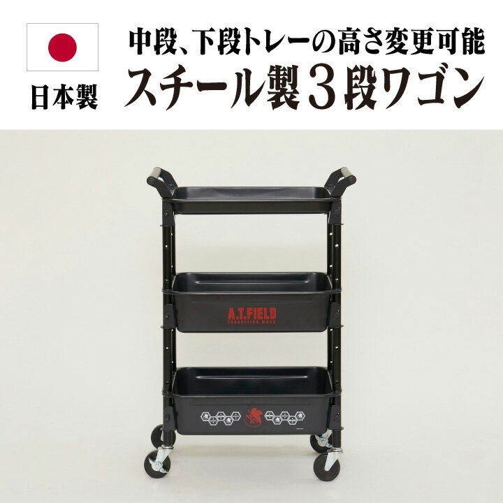 商品名:ワークブランドA.T.FIELD マルチツールワゴン エヴァンゲリオン ワークブランド「A.T.FIELD」から純国産のツールワゴンが、初号機、2号機、NERVの3種展開で登場。 スチール製で継ぎ目のないJAPANメイドツールワゴンは、キャスター付きで様々なこだわりのツールを保管・持ち運びするのにぴったり! 焼付塗装で表面処理をしており、サビ・キズ等に強く、 自在キャスター2箇所はストッパー付きなので、動かいないよう固定もできます。 持ち手も握りやすいように設計。 初号機、2号機、NERVの3デザイン展開。 中段と下段の深トレイには、A.T.FIELDロゴとNERVマーク、NERVのモニターをイメージしたハニカム柄デザイン。 発売中のA.T.FIELDマルチツールボックスとの同柄展開なので、合わせ使いがおすすめ!