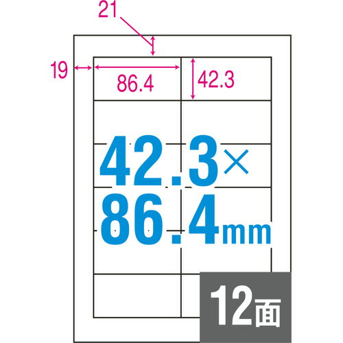 ●A4サイズ12面四辺余白のタックシール、100シート×5冊入です。●製造現場での利用に便利な面付けのラベル。●ヒサゴのラベル用レイアウトソフト「ヒサゴ工房」に対応。(※ダウンロード方法等の詳細は、メーカーのWebサイトにてご確認ください。「ヒサゴ工房」の使い方に関してはメーカーへお問い合わせください。)<適応機種>コピー、レーザー、インクジェット●サイズ/A4●シートサイズ/210×297mm●ラベルサイズ/42.3×86.4mm●面付け/12面四辺余白●紙質/上質紙●総厚み/約0.15mm●白色度/約120%●1箱=100シート×5冊※コピー、レーザーは厚紙モード・手差し給紙でお使いください。機種によっては対応しない場合がございます。※インクジェットはにじみが生じる場合がございます。●メーカー/オリジナル●型番/ELT040Z●JANコード/490266862498642/4272373_01_S.jpg※青字は一片あたりの寸法です。※メーカー都合によりパッケージ・仕様等が予告なく変更される場合がございます。ご了承ください。本商品は自社サイトでも販売しているため、ご注文のタイミングにより、発送までにお時間をいただいたり、やむをえずキャンセルさせていただく場合がございます。※沖縄へのお届けは別途1650円(税込)の送料がかかります。