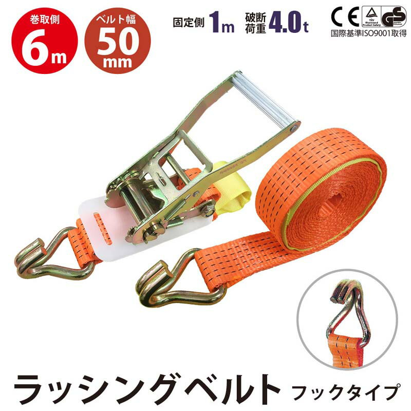 【Pa-manオリジナル】 ラッシングベルト 50mm幅 巻取5m 固定1m Jフック ラチェット 破断荷重2200kg トラック用 荷締機