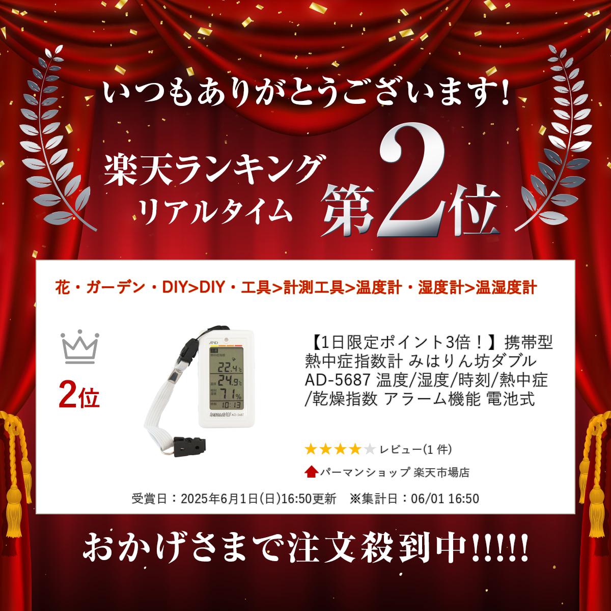 携帯型 熱中症指数計 みはりん坊ダブル AD-5687 温度/湿度/時刻/熱中症/乾燥指数 アラーム機能 電池式