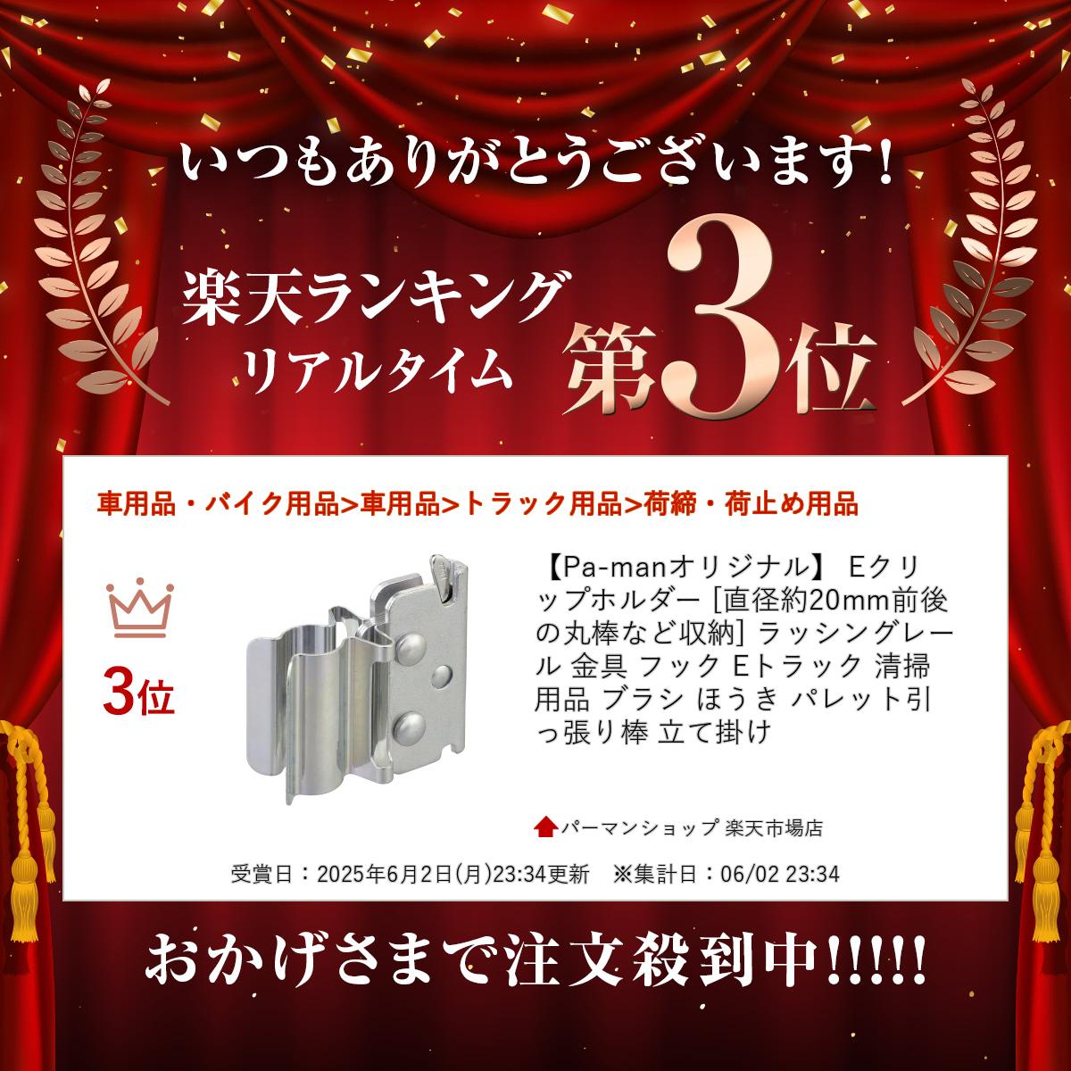 【Pa-manオリジナル】 Eクリップホルダー [直径約20mm前後の丸棒など収納] ラッシングレール 金具 フック Eトラック 清掃用品 ブラシ ほうき パレット引っ張り棒 立て掛け