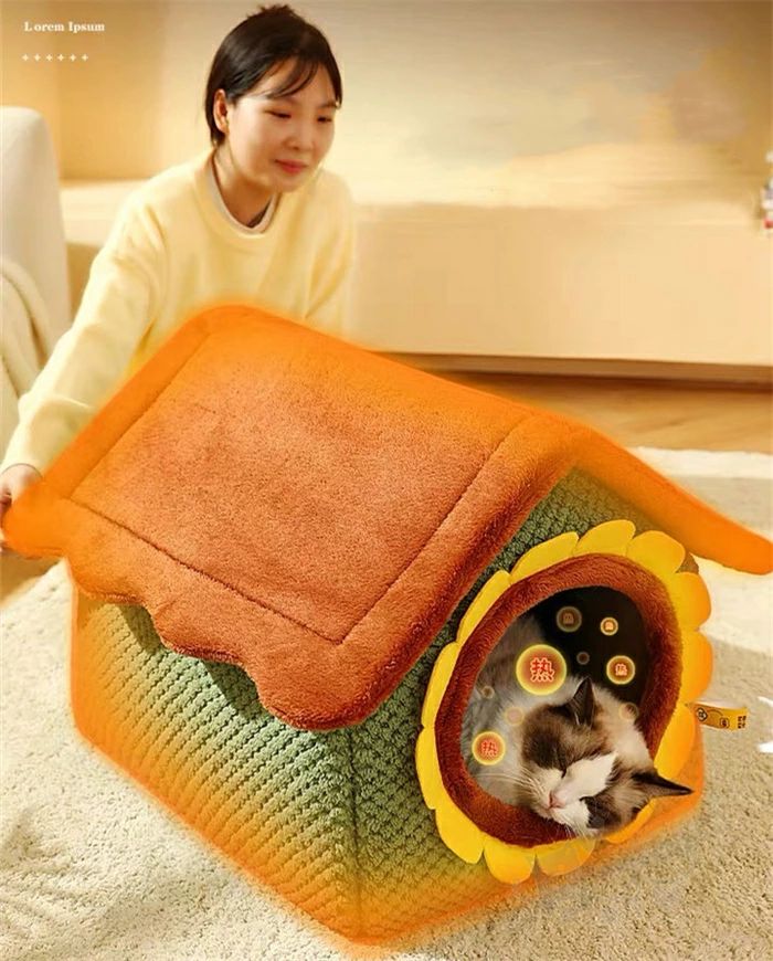 猫ハウス 四季通用 ペットハウス 暖かい ペットベッド 猫小屋 犬猫 兼用 冬用 滑り止め 快適 洗える 寝床 保温 寒さ対策 折りた