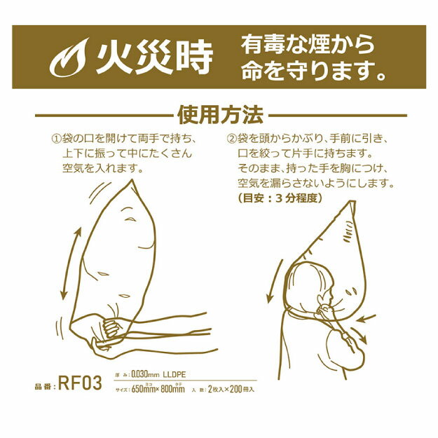 【個人宅配送可能/ケース販売】避難用 ポリ袋 45L 透明 LLDPE 難燃性 0.03mm厚 2枚×200冊 400枚 ゴミ袋 平袋 ハウスホールドジャパン RF03 送料無料