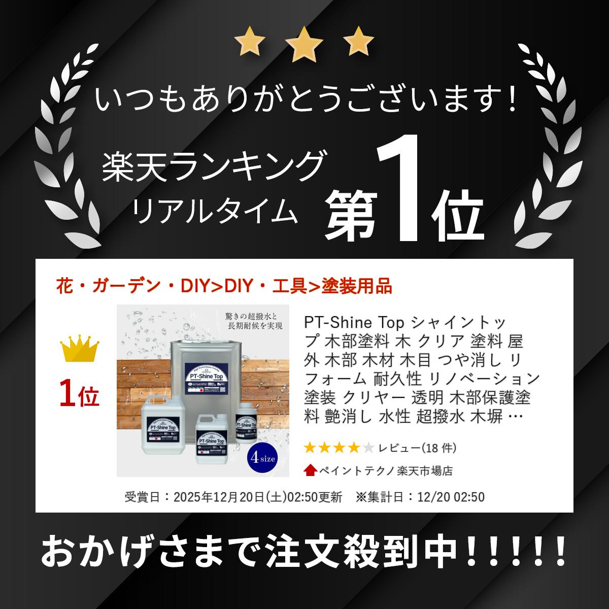 PT-Shine Top シャイントップ 木部塗料 木 クリア 塗料 屋外 木部 木材 木目 つや消し リフォーム 耐久性 リノベーション 塗装 クリヤー 透明 木部保護塗料 艶消し 水性 超撥水 木塀 玄関柱 ラティス ログハウス 色褪せ 防止 ウッドデッキ 長持ち 紫外線 木 撥水剤