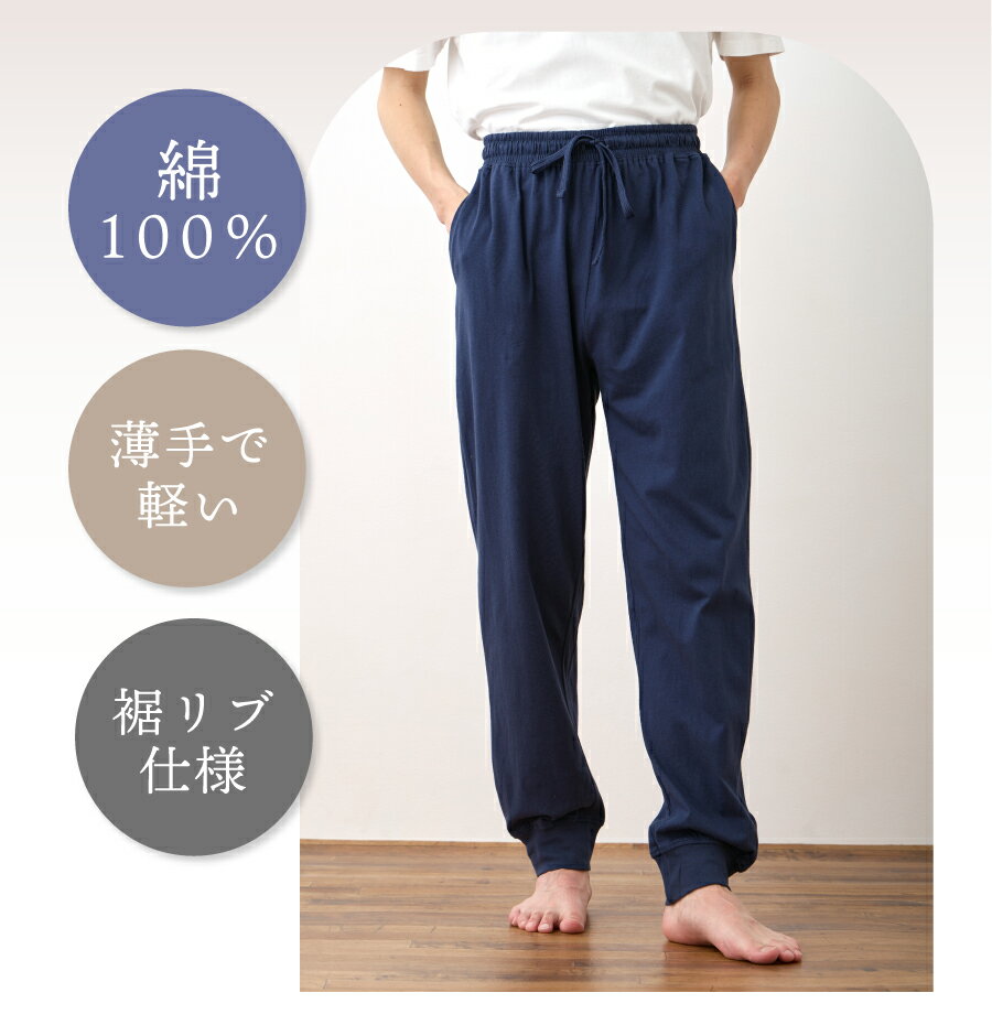 ルームパンツ メンズ 綿100% パジャマ 春 夏 柔らかく軽い薄手の快適Tシャツ素材 M L LL 3L 部屋着 ルームウェア おそろい メール便なら 送料無料