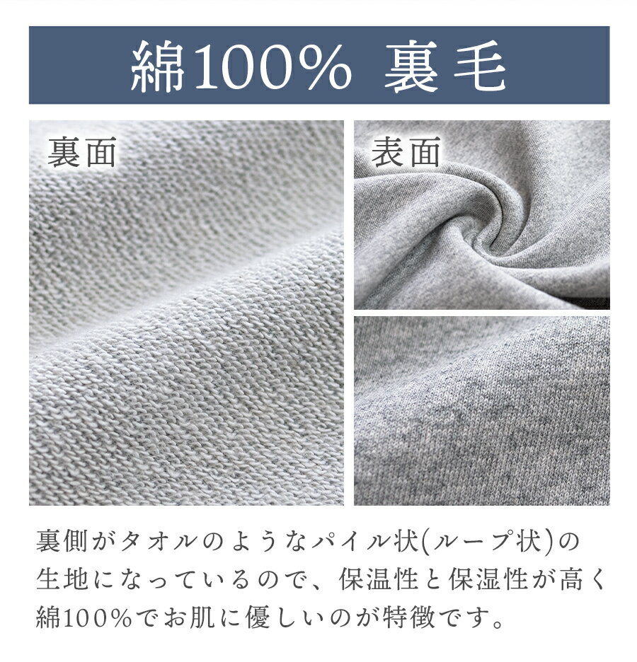 KIDS 同柄パジャマ120-160cmは コチラから⇒ SPEC -スペック- 商品説明 このスウェットルームウェアは、綿100%のしっかりとした裏毛素材で、秋冬にぴったりです。 裏側がタオルのようなパイル状(ループ状)の生地になっているので、保温性と保湿性が高く、お肌に優しいのが特徴です。 ユニセックスで着こなせるシンプルなデザインは、ワンマイルウェアとしても使いやすく、どんなシーンにも合わせやすいです。 両脇や後ろにもポケットがあり便利です。裾にはリブがついており、ずりあがらず冷気を防ぎます。 同型のキッズルームパンツもあり、家族おそろいで着ることができます。 《同柄・ルームパンツ》 ⇒ 子供/120-160cm 素 材 綿 100% サイズ S・M・L・LL カラー展開 グレー/ブラック 仕 様 パンツ仕様 :長パンツ/ウエスト紐/ウエスト総ゴム/裾リブ仕様 アイテムガイド おすすめシーズン-秋冬/生地の厚み-厚手/伸縮性-適度にあり/透け感-なし ※当店スタッフの個人的な感想になります。お客様により、感じ方等異なる場合がございますので、あくまでもご参考としてご利用ください。 生産国 中国 関連商品 ルームパンツ 一覧はこちら >>> 春秋パジャマ 一覧はこちら >>> 冬パジャマ 一覧はこちら >>> 注 意 『 綿製品 』は乾燥機を使用すると、大きく縮む場合がありますので、 乾燥機のご使用はお避け下さい。 備 考 洗濯・アイロンの際は、商品の洗濯表示をご確認下さい。 画像はご覧になっている環境により、実際の商品と色が違って見えることがございます。 平置き ・メジャー採寸ですので若干の誤差が生じる場合がございます。あらかじめご了承下さい。 関連ワード 秋 冬 厚手 暖かい ネル 起毛 綿100% コットン 親子 おそろい リンクコーデ ジョガーパンツ リブ 裏毛 ワンマイルウェア