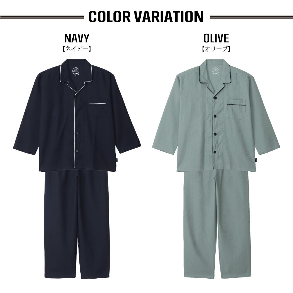 ホテル仕立て 5つ星パジャマ メンズ ワッフル生地 長袖 ボタン ネイビー オリーブ M-LL 135561h