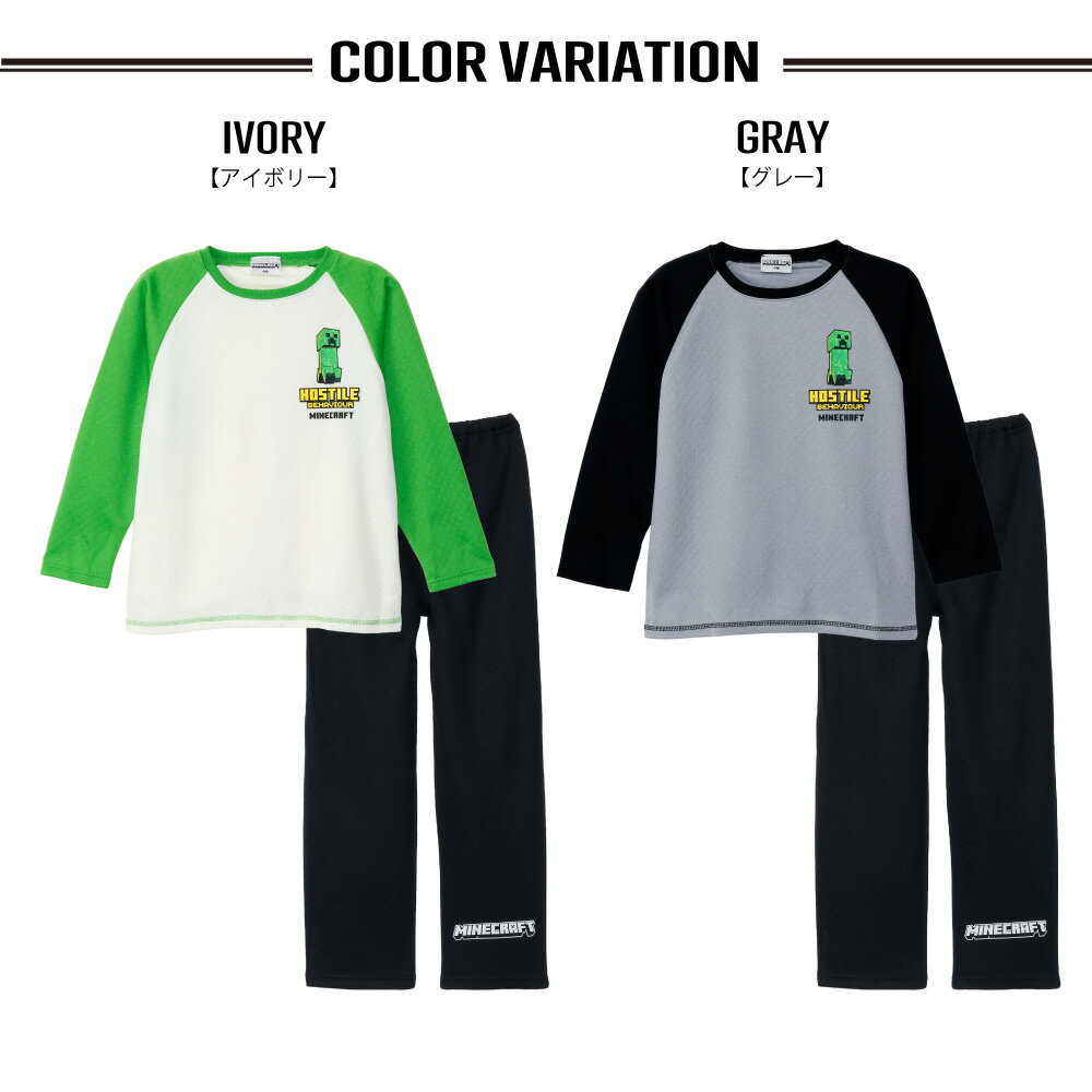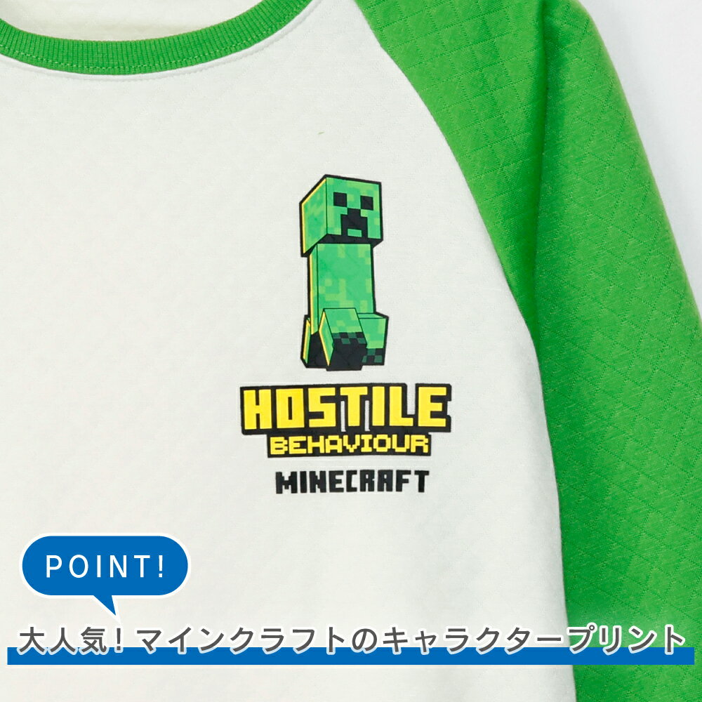 マインクラフト パジャマ 男の子 ニットキルト ルームウェア 長袖 秋 冬 アイボリー グレー 130-160 66561ah