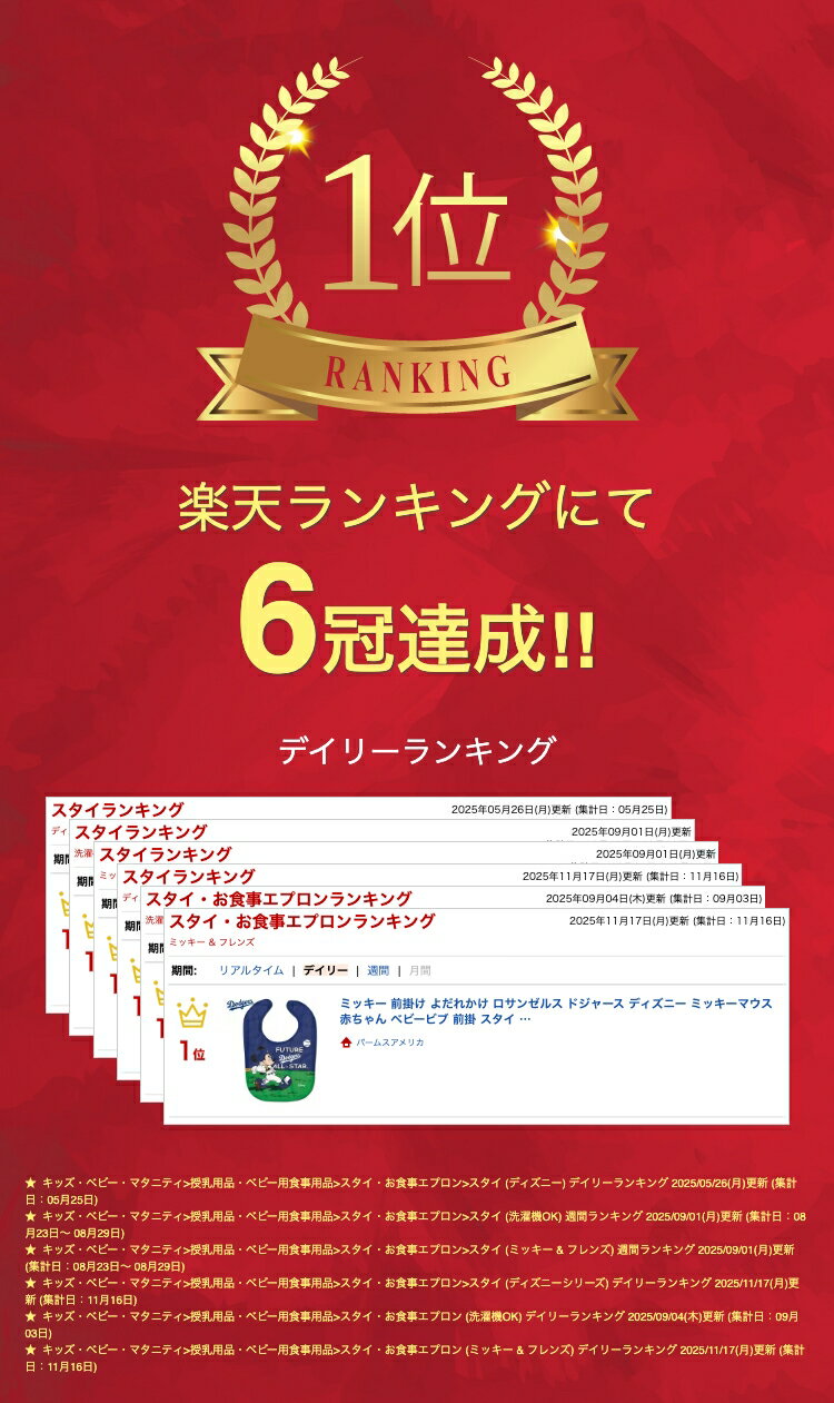 ミッキー 前掛け よだれかけ ロサンゼルス ドジャース ディズニー ミッキーマウス 赤ちゃん ベビービブ 前掛 スタイ 出産祝い 野球 メジャーリーグ Disney Mickey All Pro Baby Bib MLB公式 Los Angeles Dodgers ギフト 誕生日 クリスマス