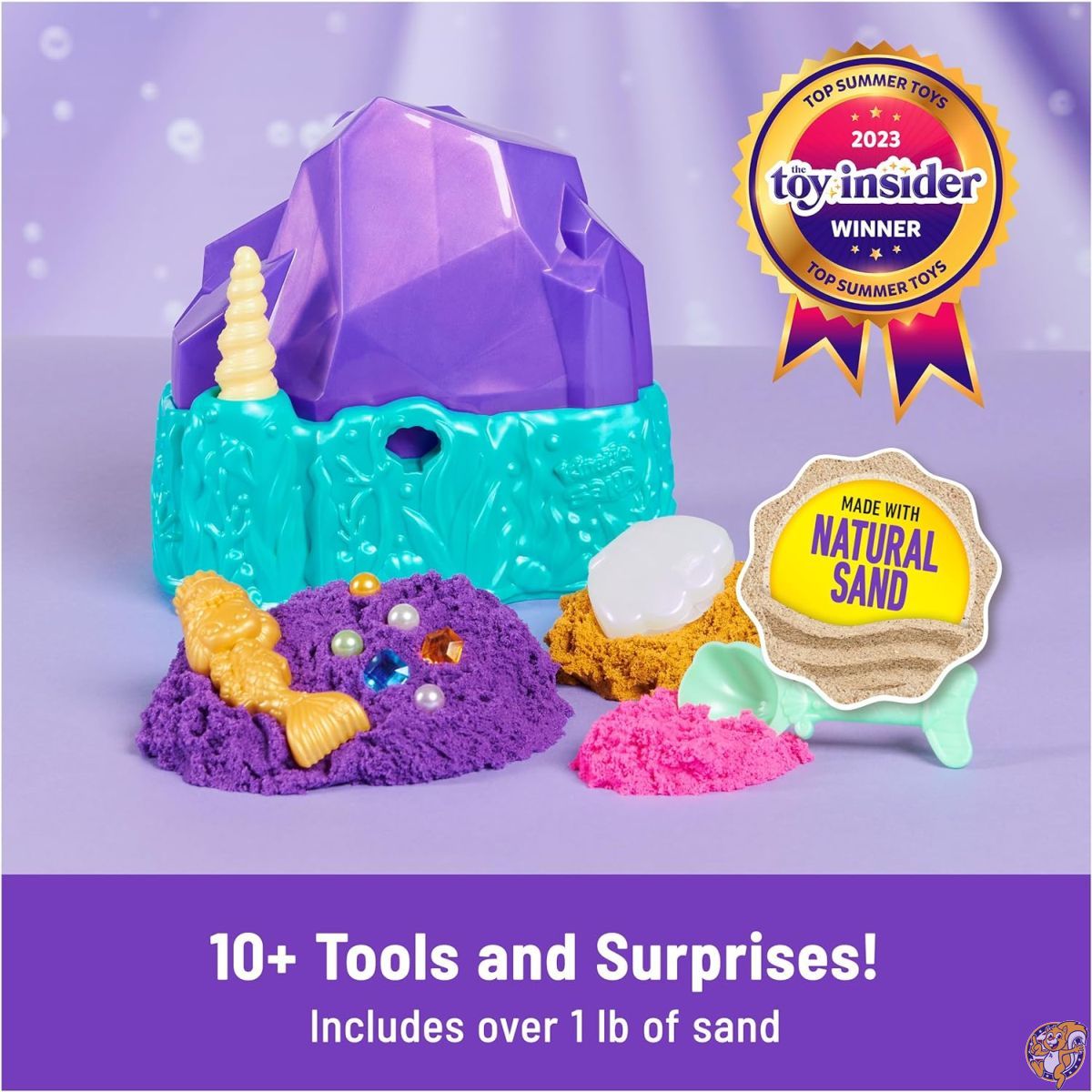 Mermaid Crystal Playset, Over 1lbs of Play Sand, Gold Shimmer Storage and Tools, Sensory Toys for Kids Ages 3 up