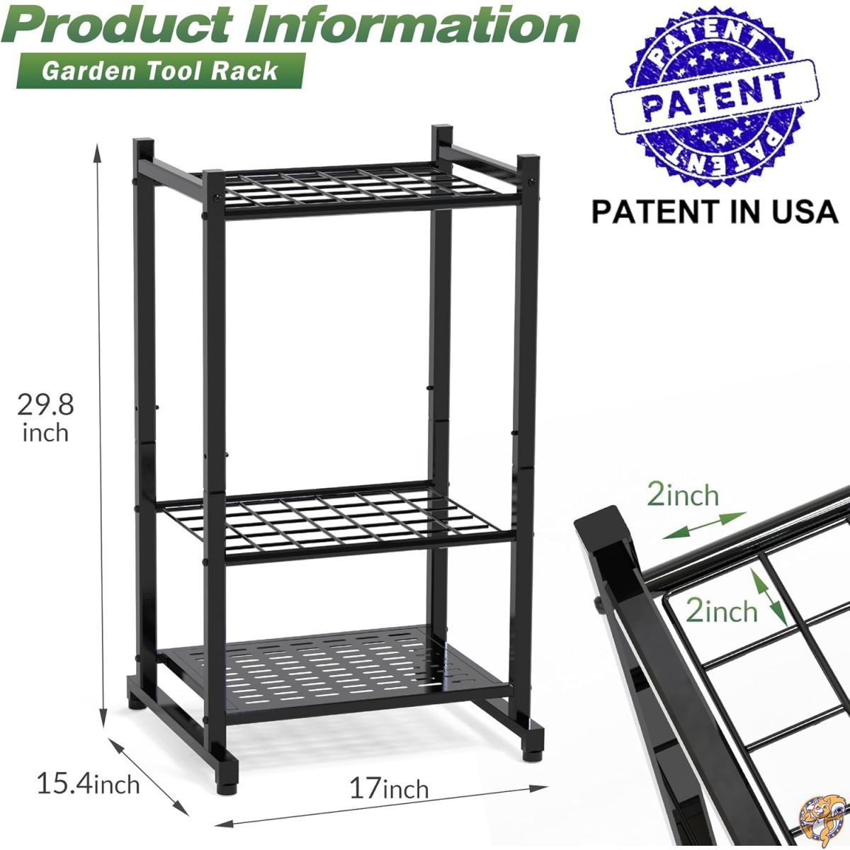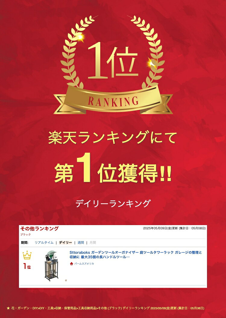 【ポイント3倍20時28時間】Sttoraboks ガーデンツールオーガナイザー 庭ツールタワーラック ガレージの整理と収納に 最大35個の長ハンドルツール/レーク/ほうき 高耐久 スチールガーデンツールスタンド 小屋 アウトドア 自宅 ブラック
