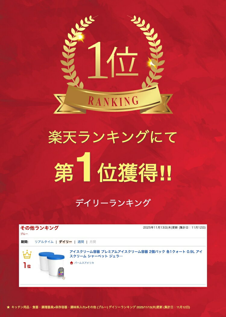 【注意事項】:・当店でご購入された商品は、原則として、「個人輸入」としての取り扱いになり、全て米国からお客様のもとへ直送されます。 ・個人輸入される商品は、全てご注文者自身の「個人使用・個人消費」が前提となりますので、ご注文された商品を第三者へ譲渡・転売することは法律で禁止されております。 ・通関時に関税・輸入消費税が課税される可能性があります。課税額はご注文時には確定しておらず、通関時に確定しますので、商品の受け取り時に着払いでお支払いください。 詳細はこちらご確認下さい。 *色がある場合、モニターの発色の具合によって実際のものと色が異なる場合があります。 ※ブラウザ上と実際のカラーは異なる場合がございます。予めご了承ください。関連商品【1000円/555円クーポン26時間】アイスクリーム容器 2個セット...【1000円/555円クーポン26時間】オクソー グッドグリップPOP...【1000円/555円クーポン26時間】ピックルパイプ シリコン一体型...8,391円8,458円8,714円【1000円/555円クーポン26時間】山崎実業 バナナスタンド タワ...【1000円/555円クーポン26時間】メイソンジャー レギュラーマウ...【1000円/555円クーポン26時間】メイソンジャー レギュラーマウ...8,594円9,752円7,534円【1000円/555円クーポン26時間】OXO 保存容器 旧タイプ ポ...【1000円/555円クーポン26時間】Homeries バナナホルダ...【1000円/555円クーポン26時間】Set of 2 Reusab...8,530円8,459円8,509円【1000円/555円クーポン26時間】Handy Gourmet ハ...【1000円/555円クーポン26時間】オクソー 食品保存容器 OXO...【1000円/555円クーポン26時間】EVERIE 折り畳み式ヒンジ...10,181円8,559円6,407円アイスクリーム容器 プレミアムアイスクリーム容器 2個パック 各1クォート 0.9L アイスクリーム シャーベット ジェラートに最適な蓋付き 冷凍庫保存容器 ブルー BALCI バルチ 【冷凍保存に最適!再利用可能な高品質アイスクリーム容器2個セット】 おうちで作ったアイスクリームやジェラート、ソルベなどを美味しさそのままに保存できる、おしゃれでタフな1クォート(約946ml)サイズの容器です。 BPAフリーの高品質素材を使用しており、安全・安心にお使いいただけます。 【こだわりの品質と使いやすさ】 丈夫な厚手素材:冷凍庫でも割れにくい設計。耐久性抜群で長く使える! 密閉性の高いフタ:冷凍焼けを防ぎ、風味をしっかりキープします。 食洗機対応:使い終わったらそのまま食洗機へ。お手入れ簡単。 【スタッキングで省スペース】 使用中も収納時もスタッキングでき、冷凍庫や戸棚のスペースを有効活用できます。 異なるフレーバーを保存したり、アイスだけでなく冷凍スープやスムージーなどにも大活躍。 【セット内容】 ・アイスクリーム保存容器 × 2個 ・専用密閉フタ × 2個 ※1個あたり約1クォート(946ml) 【こんな方におすすめ】 アイスクリームメーカーをご使用の方 自家製スイーツを保存したい方 冷凍庫の収納をスマートにしたい方 おしゃれな保存容器をお探しの方 品質に妥協せず、毎日のスイーツタイムをもっと快適に。お得な2個セットで、ぜひお試しください!