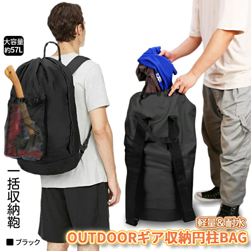 【年末年始も発送!ポイント3倍】 アウトドア用 収納 バッグ 円柱 撥水 軽量 全長72cm 57L 大容量 大口径 outdoor リュック バックパック 収納袋 シンプル アウトドア袋 鞄 旅行 ランドリー キャンプギア AUBBP 送料無料