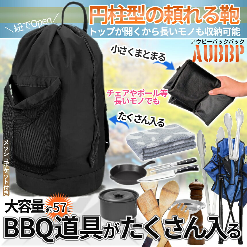 【商品説明】 「BBQって荷物がごちゃごちゃになる…」 「キャンプギアの収納が汚い…」 「旅行時出張時の手荷物が多い…」 こんな悩みをお持ちのアウトドアをこよなく愛する方へ! 内容量約57Lの撥水&軽量素材の収納バッグ 登場。 サイズは約72×32cmと大口径&大容量の円柱型♪ 様々なBBQ小物やキャンプギアを一括に収納。 トップを紐で縛るだけ♪長いモノも得意です! バックパックとして背負う形で荷物を楽々携行。 キャンプやバーベキュー、海水浴等 OUTDOORシーンの荷物入れとしてだけでなく 急な出張時や通勤通学用、災害時用にも便利。 シンプル&頑丈が魅力のマルチバッグ。 ========= 【商品仕様】 全長(約):約72×32cm カラー:ブラック ※商品サイズは入荷時期により 若干前後する場合がございますので予めご了承ください ※熱いモノの収納は出来ません。 ※日本語説明書は付属しておりません。 ※モニターにより色合いが若干前後する場合がございます。 ※輸入品ですので多少の臭いやスレ傷、汚れはご了承ください。 ========= ※詳細は画像にてご確認ください