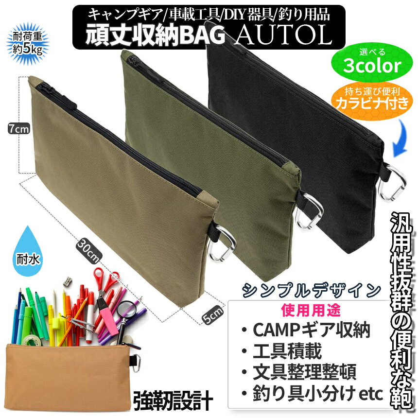 【BLACK FRIDAY!全品ポイント5倍】 収納バッグ 頑丈 ミニ ポーチ 3色選べる 収納バッグ 工具入れ キャンプギア 小物入れ アウトドア DIY ツールバッグ 持ち運び便利 18×30cm AUTOL 送料無料
