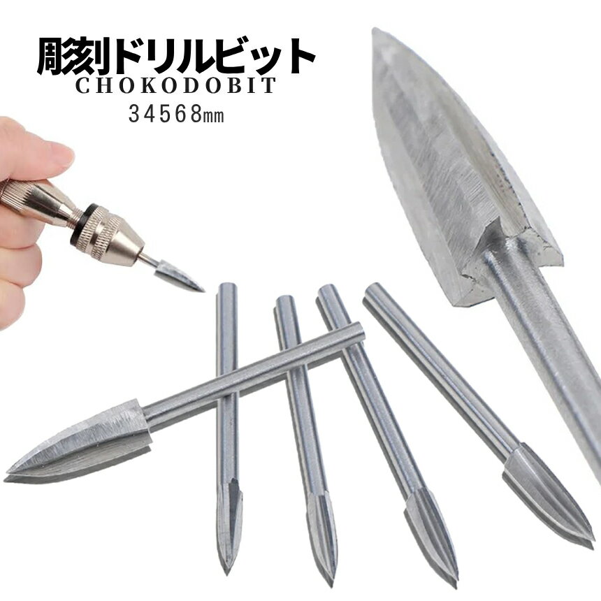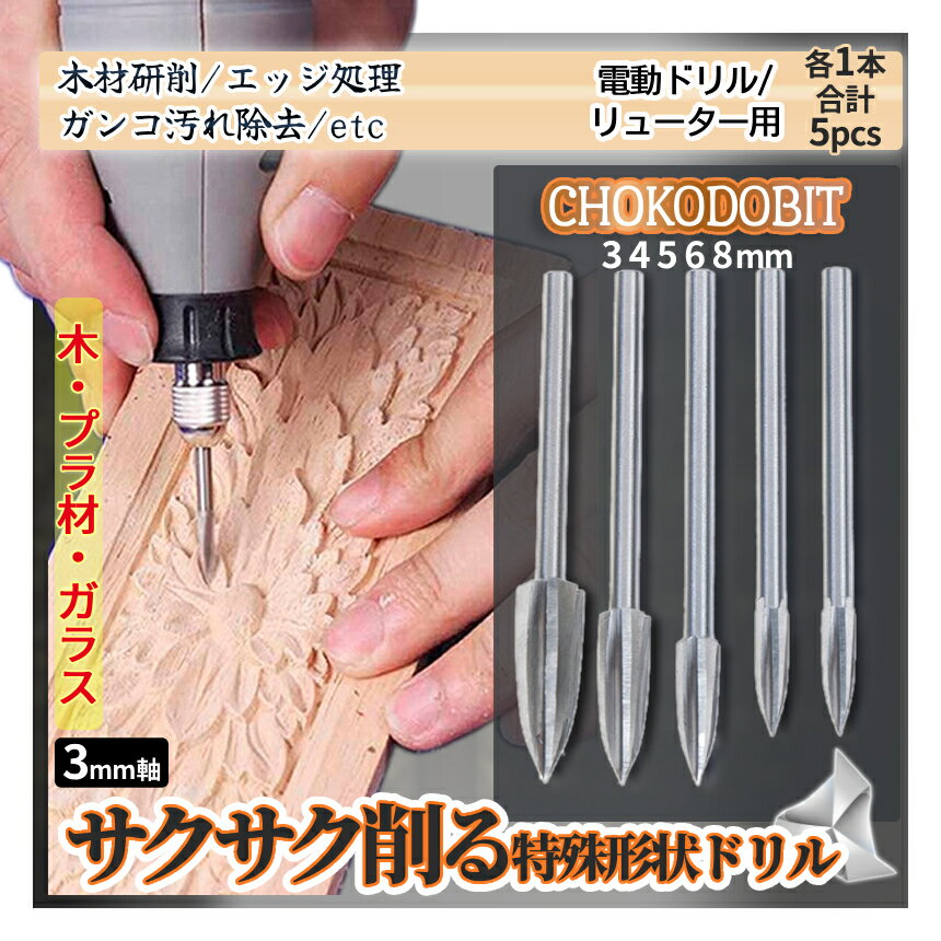 木工用 彫刻ドリル 5pcs 木彫り ルーター ヘッド 3mm軸 DIY 木工 金属 ジュエリー ポイントビット リューター ミニルーター バリ取り 表札製作 繊細作業 CHOKODOBIT 送料無料 CM