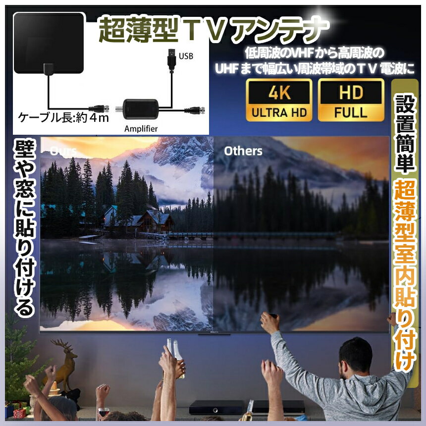 【当店限定!全品ポイント3倍】 薄型アンテナ 室内用 HD テレビ 設置簡単 窓貼り付け 地デジ ペーパーアンテナ 卓上 TV VHF対応 4Kテレビアンテナ HDTV デジタルテレビ 動作周波数 174-240MHz 470-862MHz GKUSATNA 送料無料