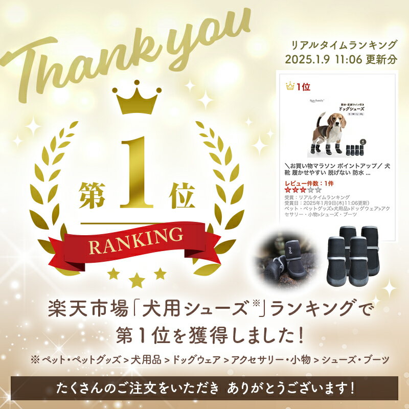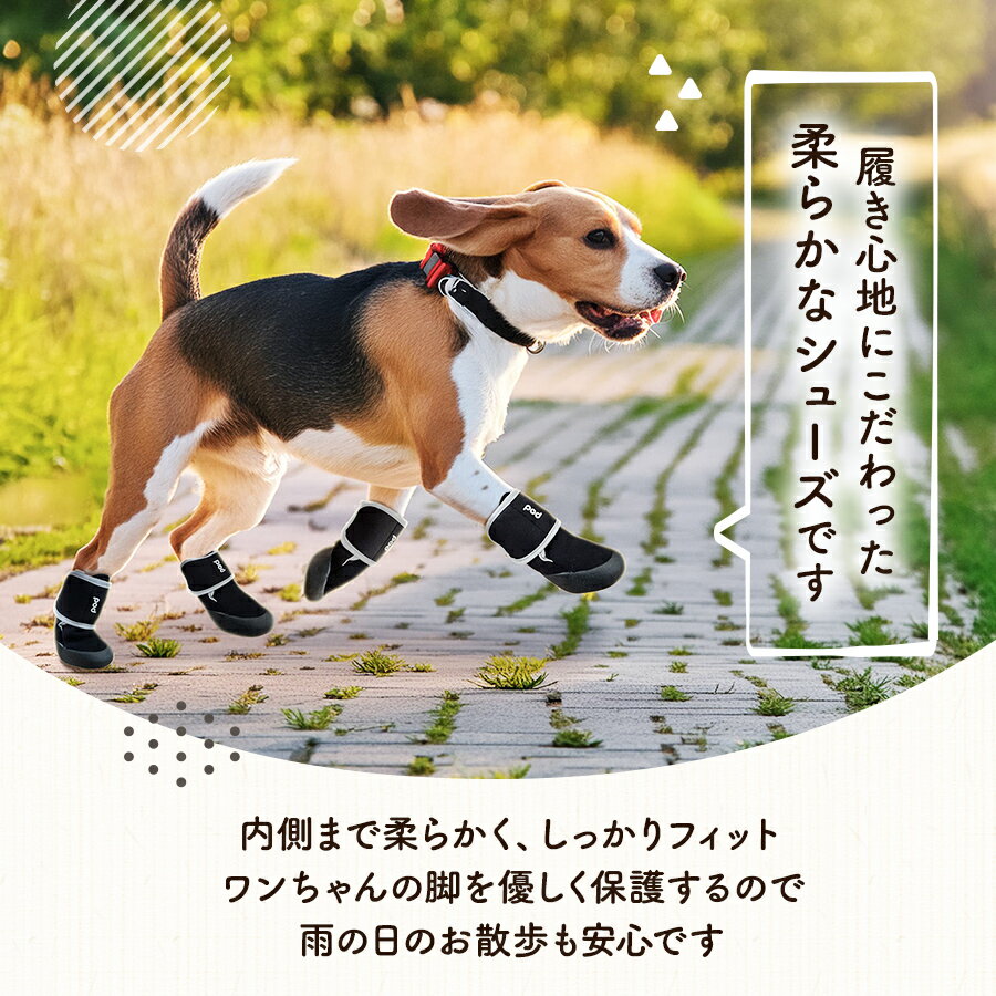 商品の特徴 ・ 程よいストレッチ感のあるウエットスーツ素材を使用、柔らかく軽量で履きやすいドッグシューズです。 ・ 靴底は柔らかい合成ゴムを採用、滑り止め効果と防水性があり雨の日の散歩にも最適です。(完全防水ではありません) ・ 開口部が広いので履かせやすく、マジックテーブ式で簡単調整できるので、ワンちゃんの足にフィットします。 ・ マジックテープはワンちゃんの毛に引っ掛かりにくいよう、ザラザラしないタイプを使用しています。 ・ 夜間のお散歩に安心な反射ライン付き。 ・ 夏の熱くなったアスファルトや冬の冷たい雪道など、ワンちゃんの足裏や肉球を保護します。 ・ シニア犬のけが予防や、お散歩中の肉球保護、汚れ防止にも。 ・ 小型犬〜大型犬に対応。(ペットの種類・成長過程・足のサイズにあわせてお選びください) ・ 持ち運びに便利なメッシュ素材の収納袋つき。 サイズの選び方 愛犬の裸足サイズを採寸しご選択ください。 1. 爪をきれいにカットします。 2. 犬の足を紙の上にのせ、体重をしっかりかけて立たせてください。 3. 毛をしっかり押さえて、ペンや鉛筆でつめを含め足の外側をなぞってください。 4. 縦横の一番長い箇所のサイズを参考にサイズ表からお選びください。 着用時のポイント 履かせる時に、左右両方の面ファスナーをひとつひとつしっかりと裏側へ貼り付けることで脱げにくくなります。 配送について XSサイズご購入の場合は「メール便」配送に変更いたします。(全国送料無料) 屋内・屋外両用ソックスもございます! 防水ゴム付き 犬用ソックスはこちら→ 商品名:犬 靴 履かせやすい 脱げない 防水 介護 滑り止め 脱げにくい くつ 柔らかい アスファルト 足 保護 小型犬 中型犬 大型犬 マジックテープ ペット靴 脱げ ない 犬の靴 犬用靴 ドッグシューズ ドッグブーツ ドックシューズ 犬用シューズ犬 靴 脱げない 履かせやすい 滑り止め 反射 レインブーツ 散歩 夏 夏用 すべり止め 老犬 トイプードル コーギー犬 靴 履かせやすい 脱げない 防水 介護 滑り止め 脱げにくい くつ 柔らかい アスファルト 足 保護 小型犬 中型犬 大型犬 マジックテープ ペット靴 脱げ ない 犬の靴 犬用靴 ドッグシューズ ドッグブーツ ドックシューズ 犬用シューズ 程よいストレッチ感のあるウエットスーツ素材を使用した、柔らかく履きやすいドッグシューズです。 靴底は柔らかい合成ゴムを採用。滑り止め効果と防水性があり雨の日の散歩にも最適です。(完全防水ではありません) 履かせる時に、左右両方の面ファスナーをひとつひとつしっかりと裏側へ貼り付けることで脱げにくくなります。 商品詳細 ブランド Pets Family シリーズ名 ドッグシューズ 防水・反射ライン付き サイズ XS:(約)幅32mm、長さ39mm、筒丈80mm S:(約)幅37mm、長さ45mm、筒丈95mm M:(約)幅43mm、長さ52mm、筒丈110mm L:(約)幅50mm、長さ60mm、筒丈130mm XL:(約)幅56mm、長さ68mm、筒丈150mm ※前足と後足のサイズが違うワンちゃんはサイズを分けてはかせることでよりフィットします。 ※商品性質上、多少誤差が生じることがあります。あらかじめご了承ください。 適正品種 小型犬・中型犬・大型犬 素材 合成ゴム、ポリエステル、熱可塑性エラストマー カラー ブラック サイズの選び方 愛犬の裸足サイズを採寸しご選択ください。 1. 爪をきれいにカットします。 2. 犬の足を紙の上にのせ、体重をしっかりかけて立たせてください。 3. 毛をしっかり押さえて、ペンや鉛筆でつめを含め足の外側をなぞってください。 4. 縦横の一番長い箇所のサイズを参考にサイズ表からお選びください。 着用時のポイント 履かせる時に、左右両方の面ファスナーをひとつひとつしっかりと裏側へ貼り付けることで脱げにくくなります。