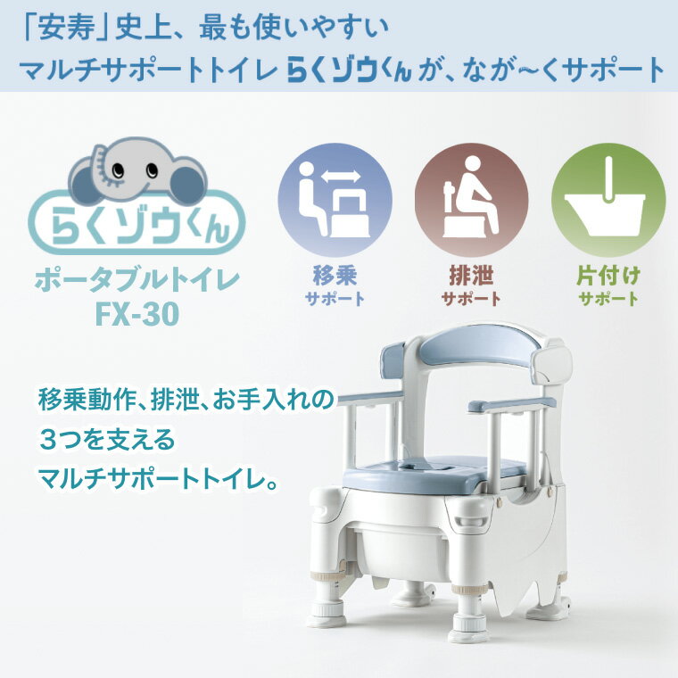 安寿 ポータブルトイレ FX-30 らくゾウくん 暖房便座 532-960 532-961 │ 介護用品 福祉用具 トイレ 樹脂製 高齢者 お年寄り シニア 老人 病院 施設 デイサービス 老人ホーム 入院 入所 排泄関連 トイレ用品 日本製 抗菌 要組立