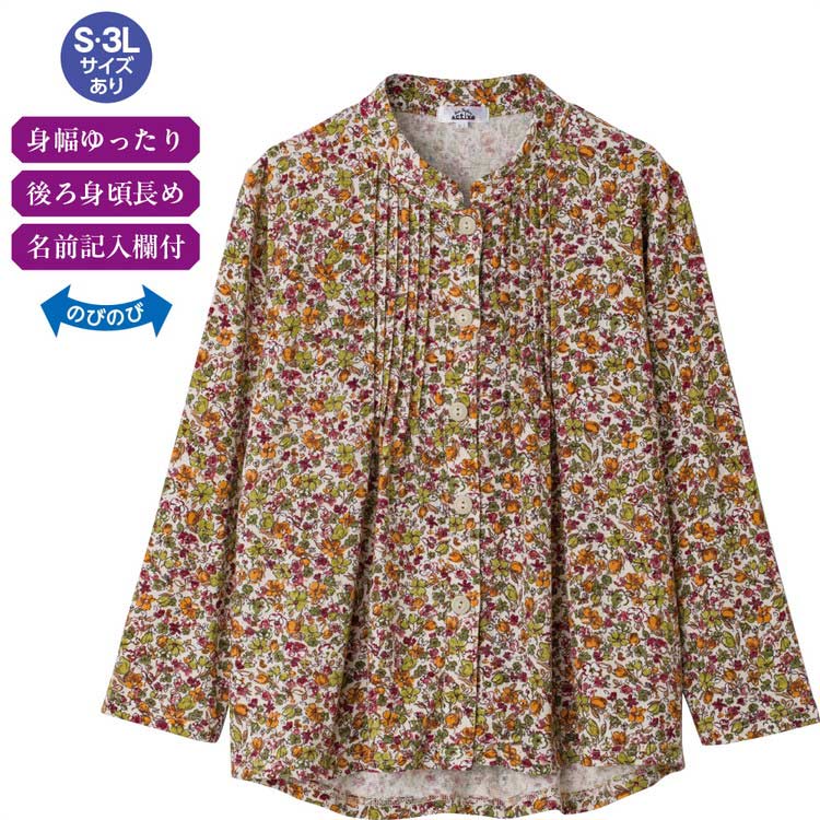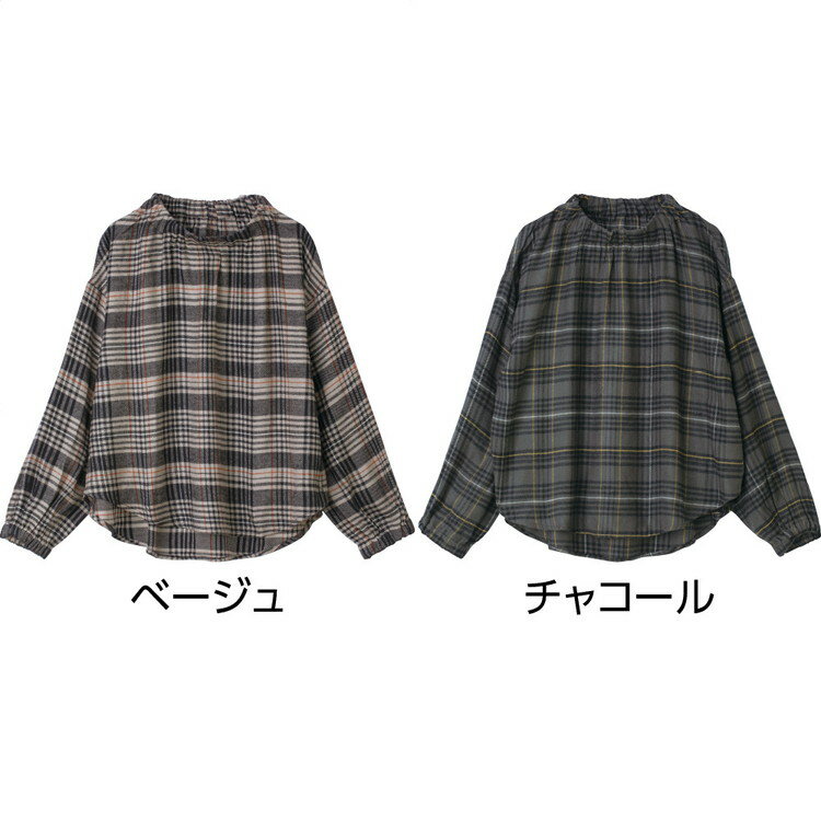 ブラウス レディース おしゃれ 秋冬 首元ゴムゆったりブラウス 821940 M〜L ケアファッション │ トップス 長袖 オシャレ着 襟元ゆったり チェック柄 格子柄 女性 婦人 ミセス シニア 上品 キレイめ 着やすい 脱ぎやすい プレゼント 2025AW