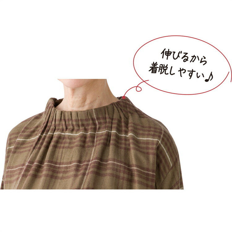 ●素材/アクリル100%●生産国/インド●洗濯機可●婦人用・今のわたしに似合うStyle。・定番の格子柄で簡単にきまる大人の上品な装い。・衿元にゴムが入っているので頭を通しやすい!・伸びるから着脱しやすい♪【ケアファッション】