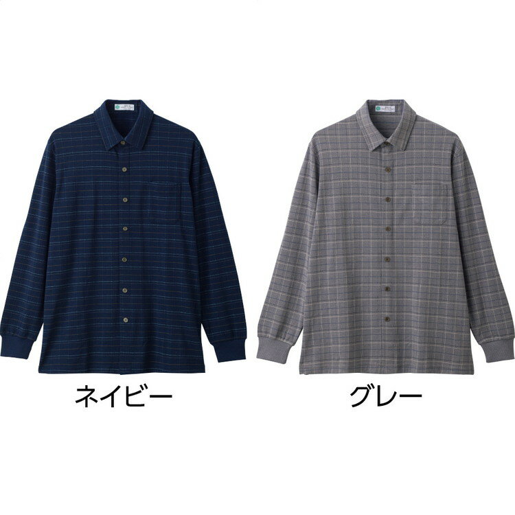 ●適応サイズ目安/(対応胸囲)M:88〜96cm・L:96〜104cm・LL:104〜112cm、(対応ウエスト)M:76〜84cm・L:84〜94cm・LL:94〜104cm●素材/ポリエステル65%、レーヨン35%、裏起毛●生産国/中国●洗濯機可●乾燥機可(60℃まで)●スナップボタン●のびのび素材●胸ポケット付き●名前記入欄付き●紳士用・ちょっとした困りごとを機能性で解決!伸縮性があって着心地の良いニットシャツ。・押さえるだけでパチンと留まり、引っ張るだけで外れるから、着脱ラクラク。・指先が動かしにくい人や介助する人に便利。・名前記入欄付きで間違い防止。施設での洗濯後も間違いを防止できます。※第1ボタンはスナップボタン仕様ではありません。【ケアファッション】