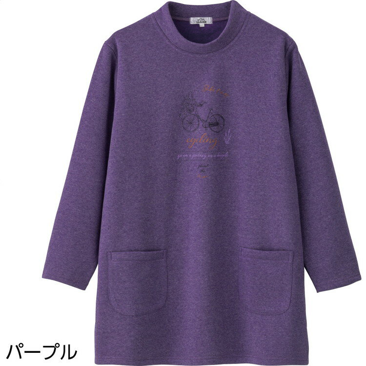 チュニック レディース おしゃれ 秋冬 裏起毛チュニックトレーナー M〜L 821419 ケアファッション │ チュニックワンピ オシャレ トレーナー トップス あたたかい かわいい イラスト プリント 女性 婦人 ミセス シニア ファッション ストレッチ 名前が書ける 2025AW